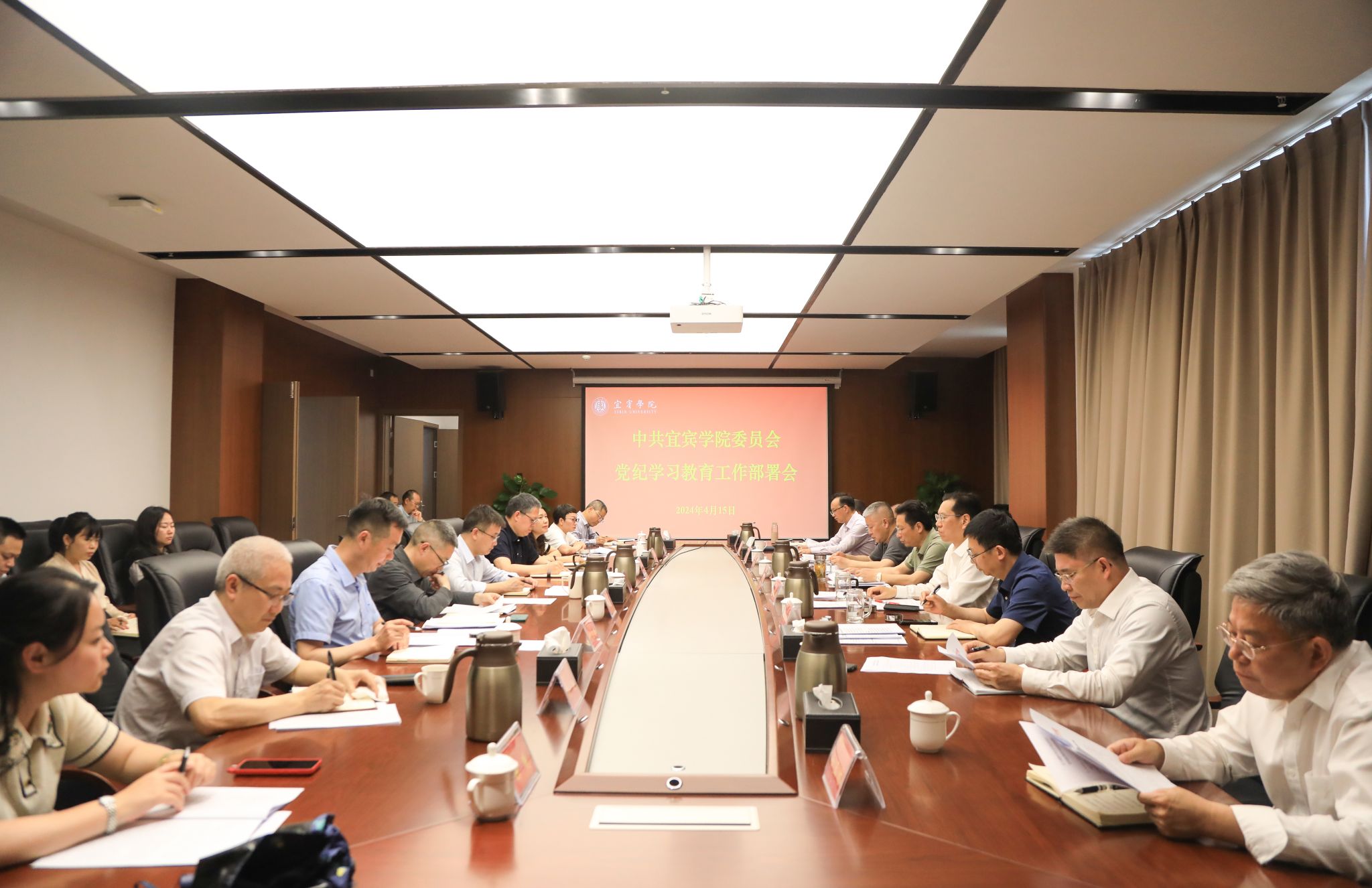 4月15日,宜賓學(xué)院黨委黨的建設(shè)領(lǐng)導(dǎo)小組召開(kāi)會(huì)議,傳達(dá)學(xué)習(xí)貫徹習(xí)近平總書(shū)記關(guān)于黨紀(jì)學(xué)習(xí)教育的重要講話和重要指示精神及中央、省委有關(guān)通知精神,研究部署宜賓學(xué)院黨紀(jì)學(xué)習(xí)教育工作。宜賓學(xué)院黨委黨的建設(shè)領(lǐng)導(dǎo)小組全體成員、黨群部門負(fù)責(zé)人參加會(huì)議,黨委書(shū)記、黨的建設(shè)領(lǐng)導(dǎo)小組組長(zhǎng)馬洪江主持會(huì)議。