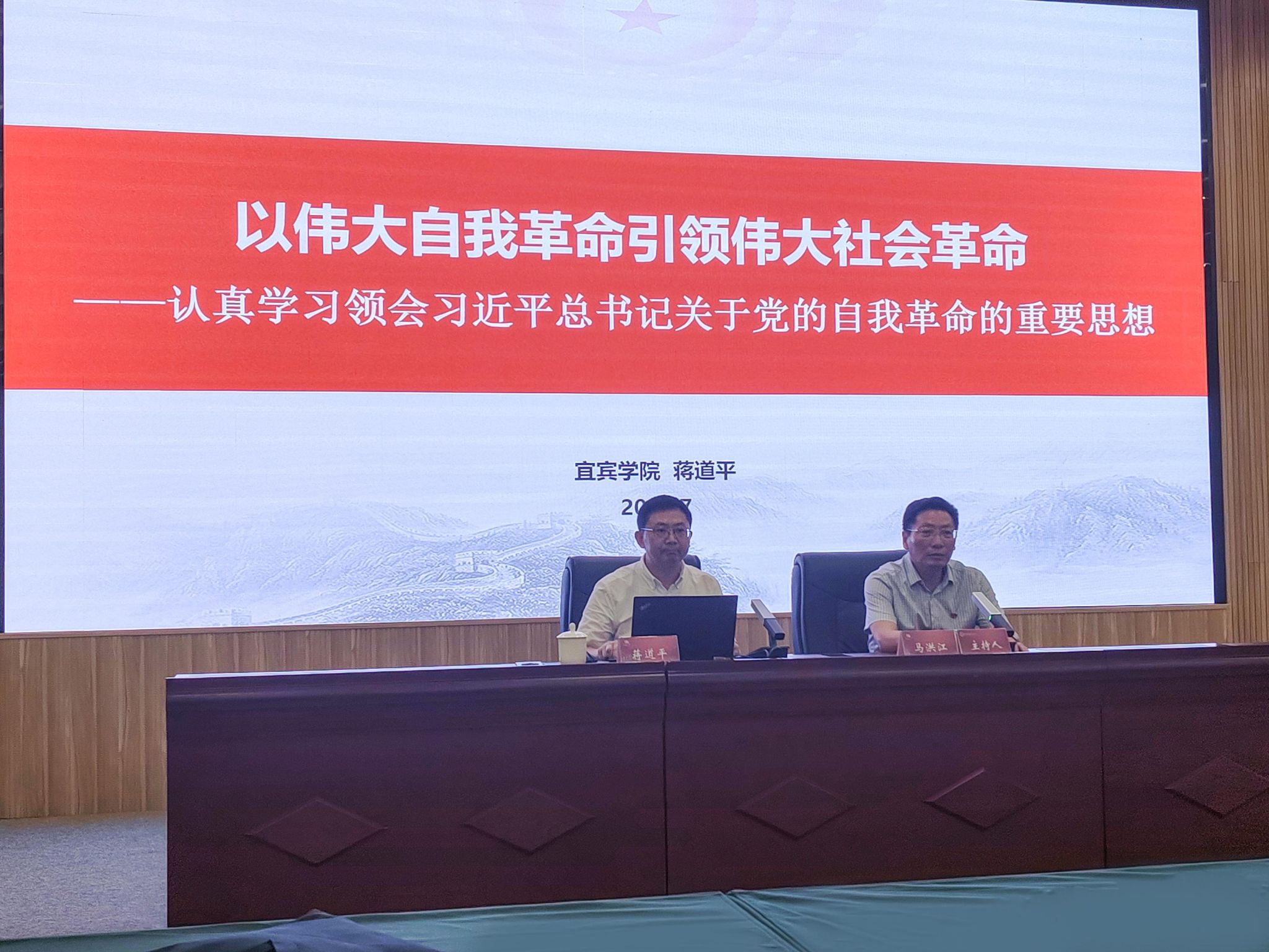 學(xué)校黨委副書記蔣道平以《以偉大自我革命引領(lǐng)偉大社會革命——認(rèn)真學(xué)習(xí)領(lǐng)會習(xí)近平總書記關(guān)于黨的自我革命的重要思想》為題,從“黨找到跳出歷史周期率的第二個答案、以偉大自我革命引領(lǐng)偉大社會革命的重要要求、保持解決大黨獨(dú)有難題的清醒和堅(jiān)定”三個方面,深刻闡釋了勇于自我革命是中國共產(chǎn)黨最鮮明的品格、最大的優(yōu)勢,也是中國共產(chǎn)黨區(qū)別于其他政黨最顯著的標(biāo)志。他強(qiáng)調(diào),對黨員領(lǐng)導(dǎo)干部而言,更應(yīng)該加強(qiáng)自我革命的勇氣,在政治、思想、行動上不斷錘煉提升,鍛造過硬過強(qiáng)的決心、毅力、能力,要胸懷“一個追求,兩個境界,三個要求,四個第一,五個辦,六個有”的境界,努力做到“正確地謀事,做正確的事,正確地做事,把事做正確”。