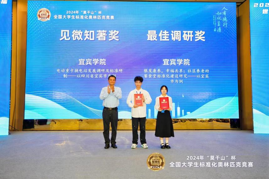 我校“夜市食品攤販的現狀及管理規范”獲得本科非標準化賽道全國一等獎,該項目從標準化與食品安全專業視角出發,通過運用多種研究方法,對夜市食品攤販進行調研,針對存在的問題提出了相應的對策建議并制定了管理規范。“電動重卡換電站發展現狀調研及標準研制——以四川省宜賓市為例”獲得見微知著獎,該項目通過實地考察法、訪談法、問卷調查等方式對宜賓大學城、菜壩等重卡換電站進行深入調研,針對問題研制標準,規范換電站電池、選址、服務和消防監管等方面的不足。“銀發康養,幸福共享:社區養老助餐食堂標準化建設研究——以宜賓市為例”獲得最佳調研獎,該項目采用文獻分析、統計分析等方法,對宜賓市三處不同性質養老助餐食堂進行多維度調研,并針對不足從政社聯動視角提出相應對策。