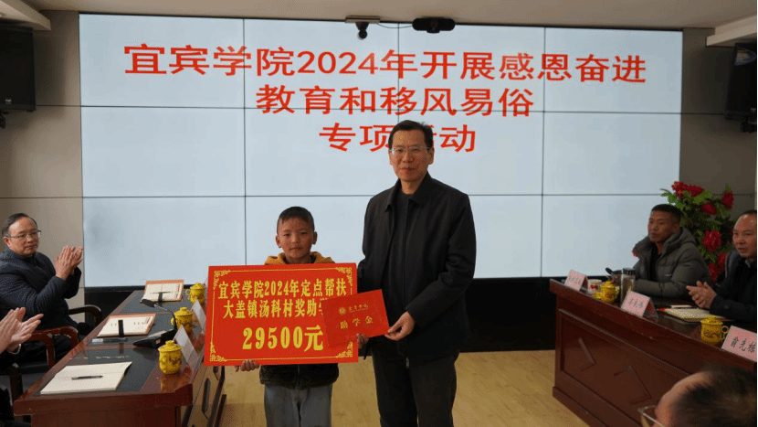 座談會上,宜賓學院向大蓋片區寄宿制學校捐贈了新生冬季校服,向大蓋鎮湯科村籍學生發放了獎、助學金,向湯科村捐贈了建設“平安鄉村”、適用于森林、草原火災的便攜式消防器材。