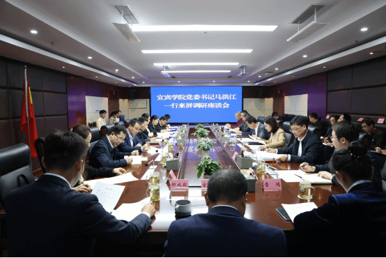 代軍向馬洪江一行的到來表示熱烈歡迎。他表示,近年來,屏山縣在經濟社會發展方面取得了顯著成就,這些成就離不開各級黨委、政府的政策引導、社會各界的積極參與以及宜賓學院長期以來無私地支持和幫助。他希望雙方能夠發揮各自的優勢,積極創新合作模式,拓寬合作領域,通過教學研用相結合的方式,實現校地資源共享、優勢互補,培養更多優秀產業人才,為推動屏山發展、宜賓發展貢獻力量。