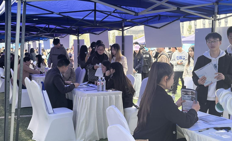 宣介會后,宜賓發展控股集團有限公司、宜賓市新興產業投資集團有限公司、宜賓天原科創設計有限公司、宜賓光原鋰電材料有限公司等150余家優質企業在足球場舉辦了春季雙選會。雙選會提供了500余類職位、超3000人招聘需求,4000余名學生現場參加。雙選會同步開啟“直播帶崗”,線上直播觀看數量超50000余人次,線上、線下累計收集應聘簡歷5000余份,現場達成初步就業意向1700余人。