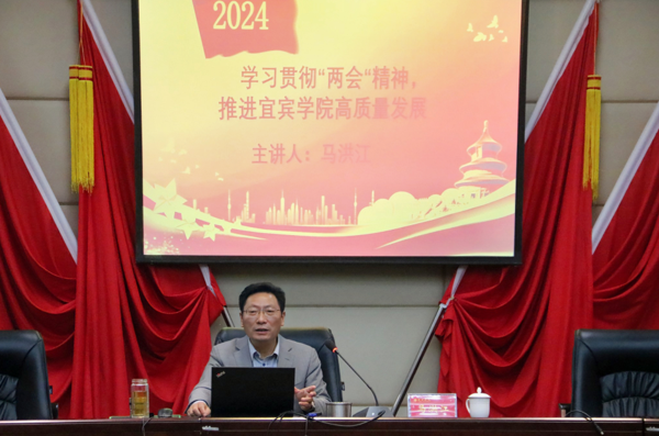 為深入學習貫徹2024年全國兩會精神,真抓實干開創學校發展新篇章,4月11日,學校黨委書記馬洪江在A區圖書館三會議室講授了主題為《學習貫徹“兩會”精神 推進宜賓學院高質量發展》的專題黨課。文藝學部處科級干部、教師黨員、學生黨員及入黨積極分子參加了學習。專題黨課由文藝學部部長高正偉主持。