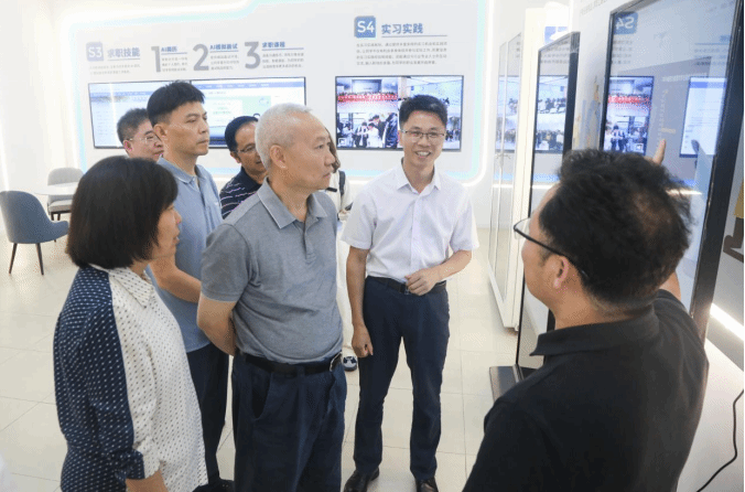 鄭學(xué)炳一行來(lái)到學(xué)校就業(yè)創(chuàng)業(yè)育人綜合體,聽(tīng)取學(xué)校就業(yè)指導(dǎo)中心主任夏高發(fā)匯報(bào)學(xué)校就業(yè)指導(dǎo)服務(wù)體系,參觀了綜合體5G云就業(yè)體驗(yàn)區(qū),了解針對(duì)重點(diǎn)群體畢業(yè)生幫扶“三個(gè)三”工作法等,對(duì)學(xué)校在就業(yè)指導(dǎo)服務(wù)方面的成果表示充分肯定,對(duì)學(xué)校畢業(yè)生在宜就業(yè)率高、服務(wù)地方經(jīng)濟(jì)社會(huì)發(fā)展表示贊賞。