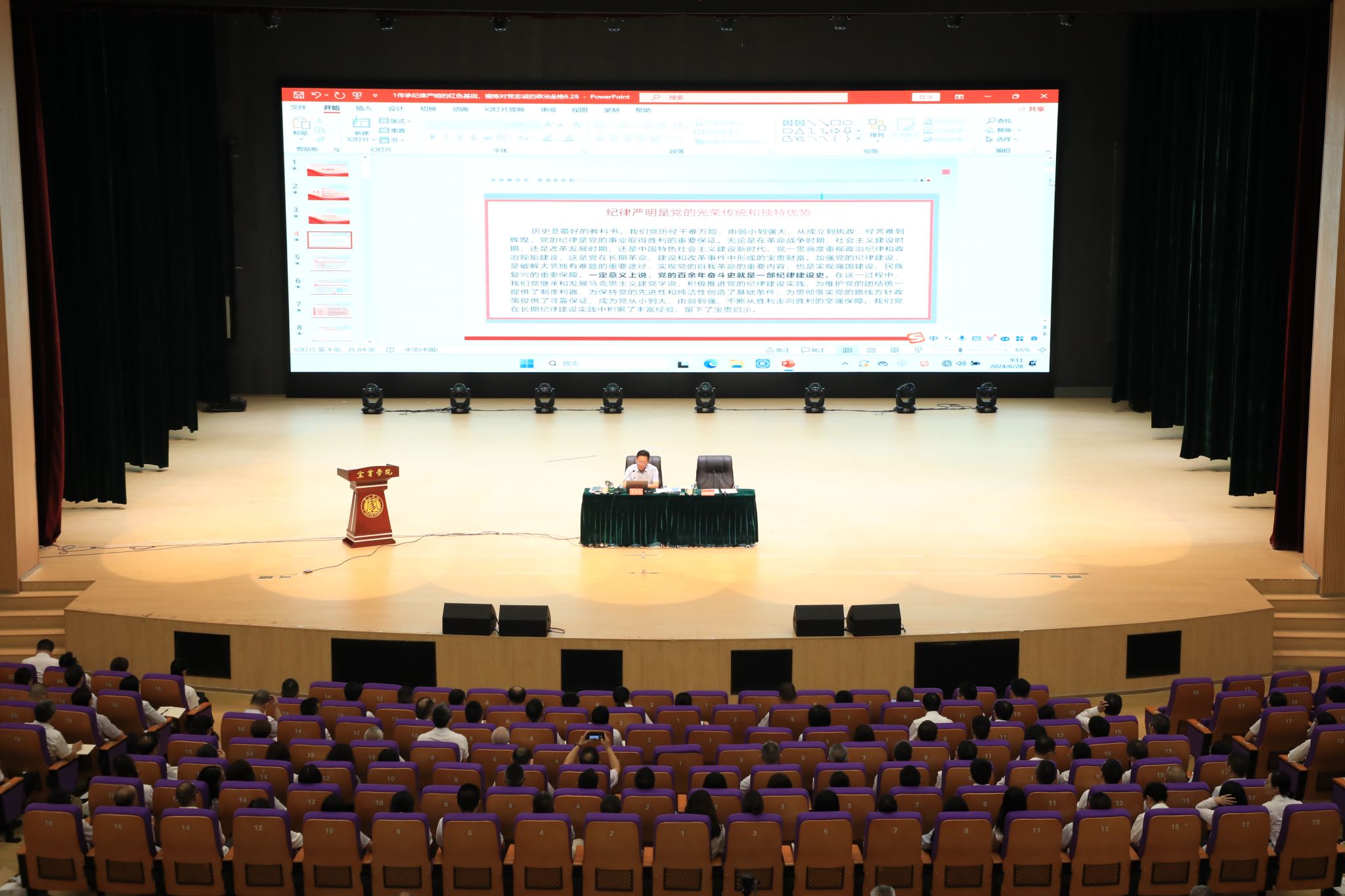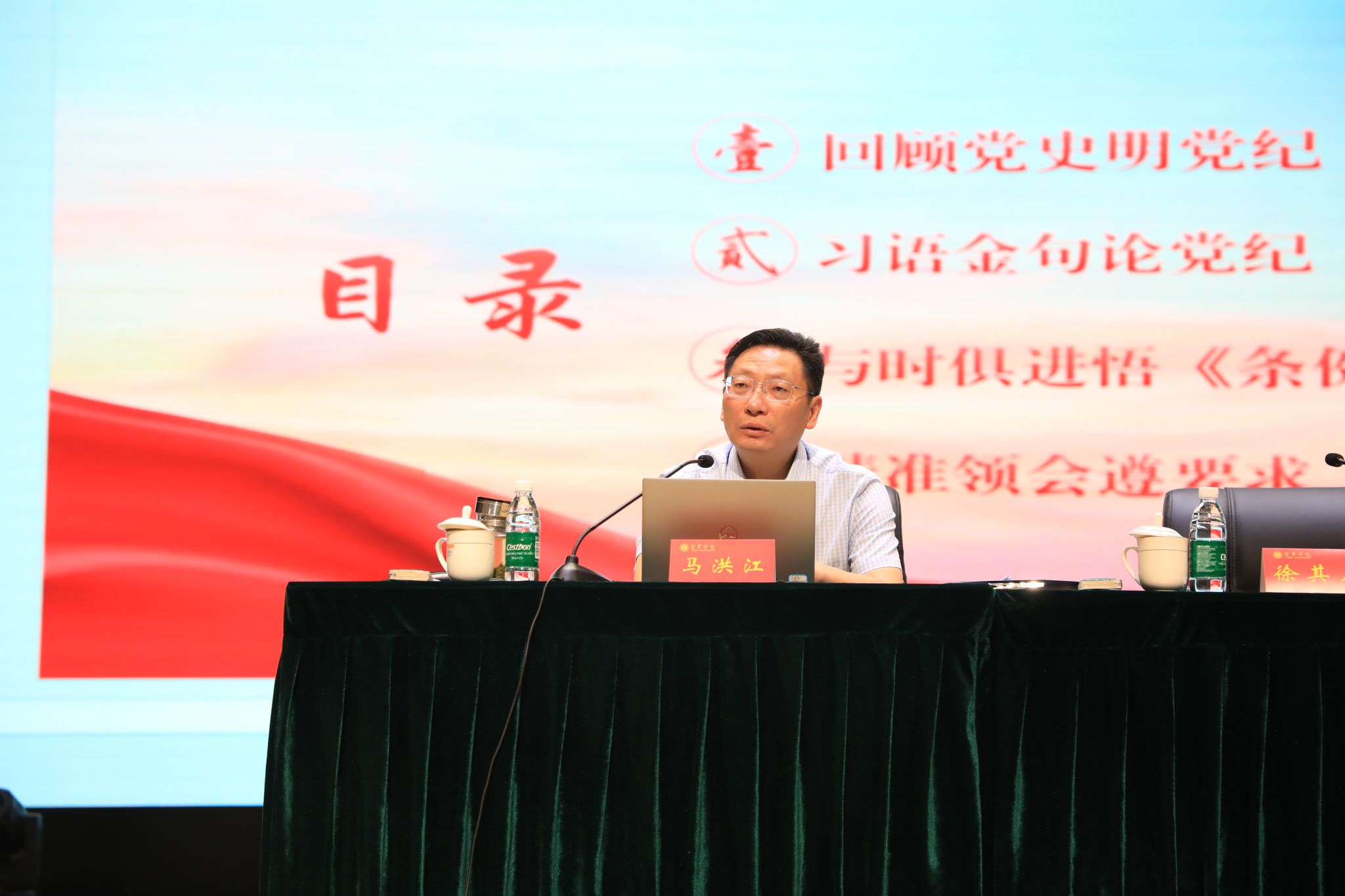 為持續(xù)推進黨紀學習教育走深走實,6月28日上午,宜賓學院黨委書記馬洪江以《傳承紀律嚴明的紅色基因 錘煉對黨忠誠的政治品格》為題講授專題紀律黨課,校領(lǐng)導(dǎo)、黨委常委、副處級以上黨員領(lǐng)導(dǎo)干部、非中共黨員的部門主要負責人、教職工黨員近800人現(xiàn)場聽課、參加學習,駐校紀檢監(jiān)察組組長、黨委副書記、紀委書記徐其虎主持黨課。