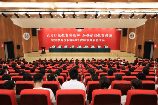 9月10日下午,宜賓學院慶祝第40個教師節暨表彰大會在求是會堂舉行。黨委書記馬洪江,黨委副書記、院長杜正聰,黨委副書記蔣道平,黨委常委、副院長王藩侯、周廣均、王如淵、白玉林,副院長覃鳳清,黨委常委、統戰部部長華曦出席會議。受表彰教師、先進集體代表、榮退教師代表、新入職教師、教師代表和學生代表,副處級及以上干部參加表彰會。
