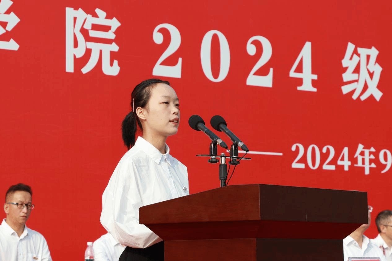 新生代表韓思懿、秦思彤發(fā)言,表達(dá)了對(duì)大學(xué)生活的無(wú)限期待,號(hào)召同學(xué)們樹(shù)立目標(biāo),砥礪前行;迎難而上,挑戰(zhàn)自我;保持平實(shí),腳踏實(shí)地。