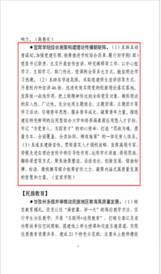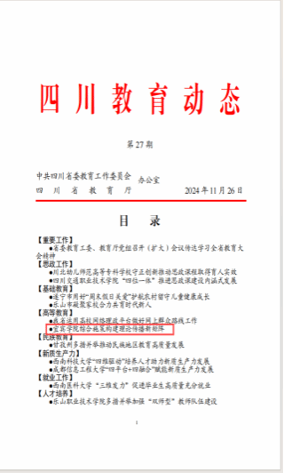11月26日,由中共四川省委教育工作委員會、四川省教育廳辦公室主辦的《四川教育動態》第27期“高等教育”板塊以《宜賓學院綜合施策構建理論傳播新矩陣》為題,報道學校理論宣傳工作。