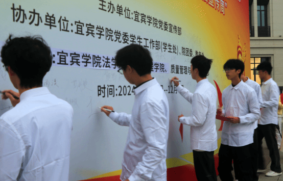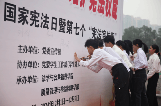 活動要求,廣大青年要以習(xí)近平法治思想為指引,深刻認(rèn)識我國社會主義法治的本質(zhì)特征,深刻認(rèn)同黨的領(lǐng)導(dǎo)是全面依法治國的根本保證,充分運(yùn)用法治思維維護(hù)權(quán)益,堅(jiān)定信心聽黨話、跟黨走,在奮進(jìn)新時(shí)代、實(shí)現(xiàn)中國夢的偉大征程中實(shí)現(xiàn)全面發(fā)展。全院師生要牢記習(xí)近平總書記來校視察的殷殷囑托,持續(xù)深入學(xué)習(xí)宣傳貫徹黨的二十大、二十屆三中全會精神和習(xí)近平法治思想,大力弘揚(yáng)憲法精神,維護(hù)憲法權(quán)威,推動全面貫徹實(shí)施憲法,增強(qiáng)法制觀念和法律意識,增進(jìn)依法治校、依法治理能力;要持續(xù)在校園中形成尊崇憲法、學(xué)習(xí)憲法、遵守憲法、維護(hù)憲法、運(yùn)用憲法的行動自覺;為學(xué)院高質(zhì)量內(nèi)涵發(fā)展?fàn)I造健康、安全、穩(wěn)定的環(huán)境氛圍,為全面建設(shè)特色鮮明的應(yīng)用型綜合大學(xué)提供強(qiáng)力保障。