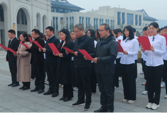 本次活動由黨委宣傳部主辦,黨委學(xué)生工作部、院團(tuán)委、教務(wù)處協(xié)辦,法學(xué)與公共管理學(xué)院、質(zhì)量管理與檢驗(yàn)檢測學(xué)部承辦。上午8:00,參加活動的全體師生莊嚴(yán)肅立,奏唱國歌、升國旗,活動開始。