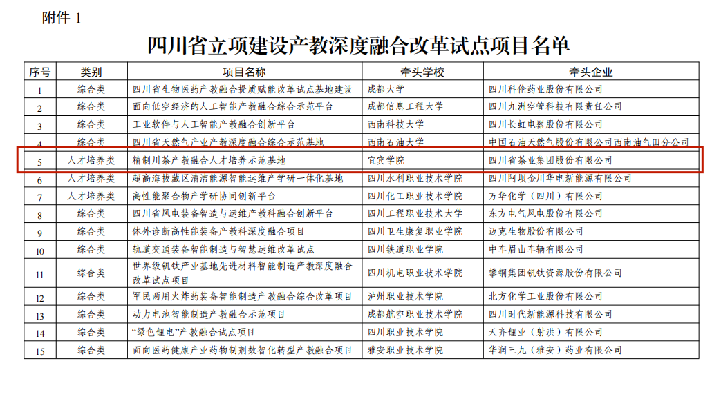 近日,四川省財政廳、四川省教育廳、四川省經濟和信息化廳、四川省科學技術廳發文公布了“2024年四川省立項建設產教深度融合改革試點項目名單”,我校“精制川茶產教融合人才培養示范基地”項目獲批立項人才培養類項目。該項目為學校與四川省茶業集團有限公司聯合申報建設,標志著學校在產教深度融合方面取得了重要突破。