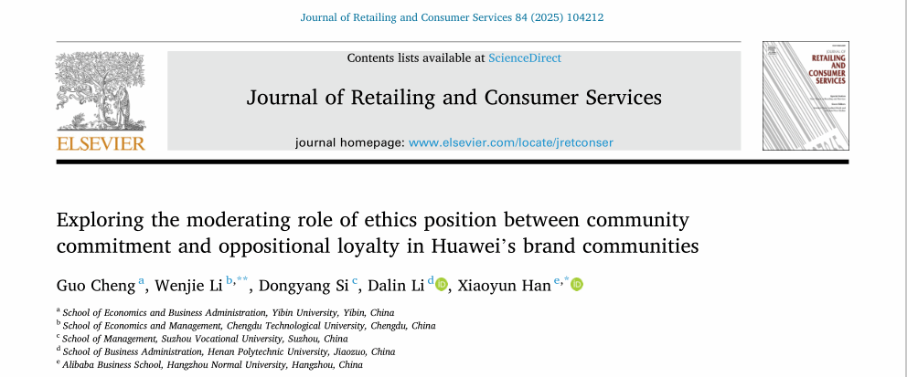 我校程果博士團隊在TOP國際學術期刊《Journal of Retailing and Consumer Services》發表最新研究成果