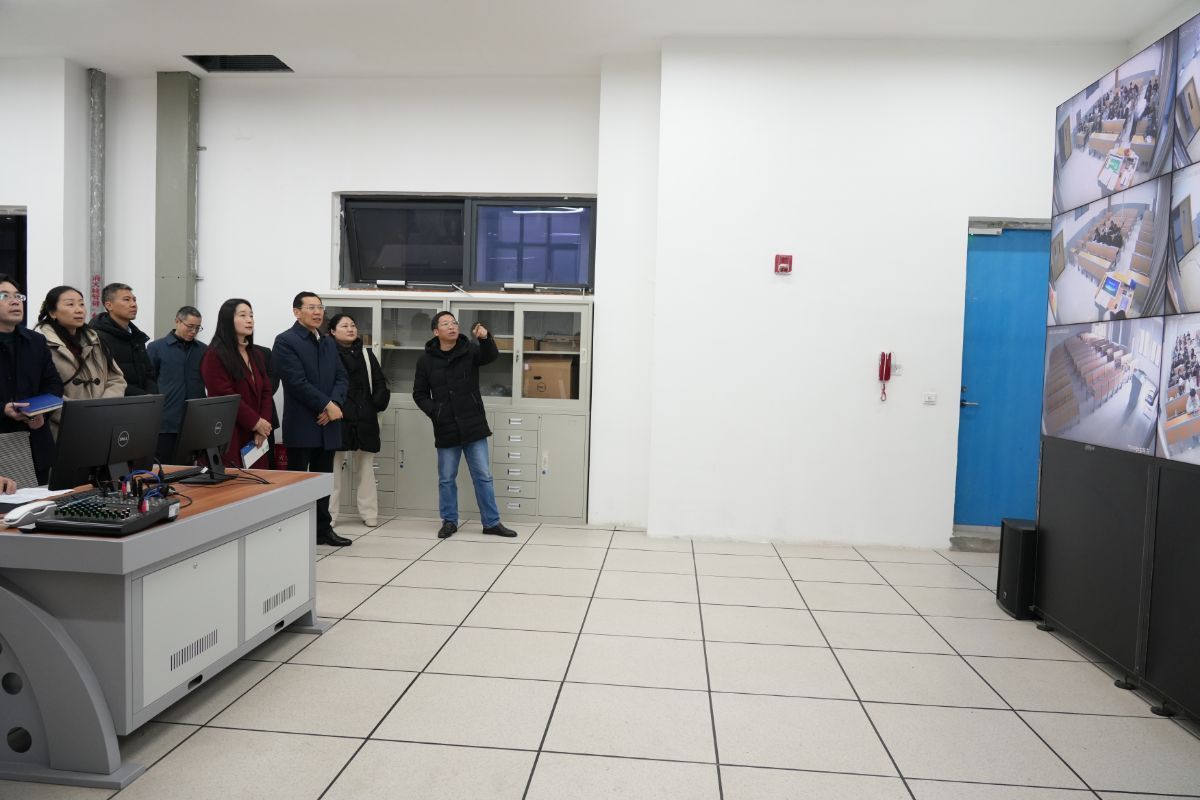 校領導一行首先來到教學監控中心,通過實時監控系統詳細了解教師上課狀態、學生聽課情況以及課堂整體氛圍。監控畫面顯示,教師們精神飽滿,授課認真;學生們出勤率高,聽課專注,課堂互動積極;教學設備運轉正常,教學秩序井然有序。校領導對開學首日的整體教學情況表示滿意,并對部分課堂的亮點給予了充分肯定。