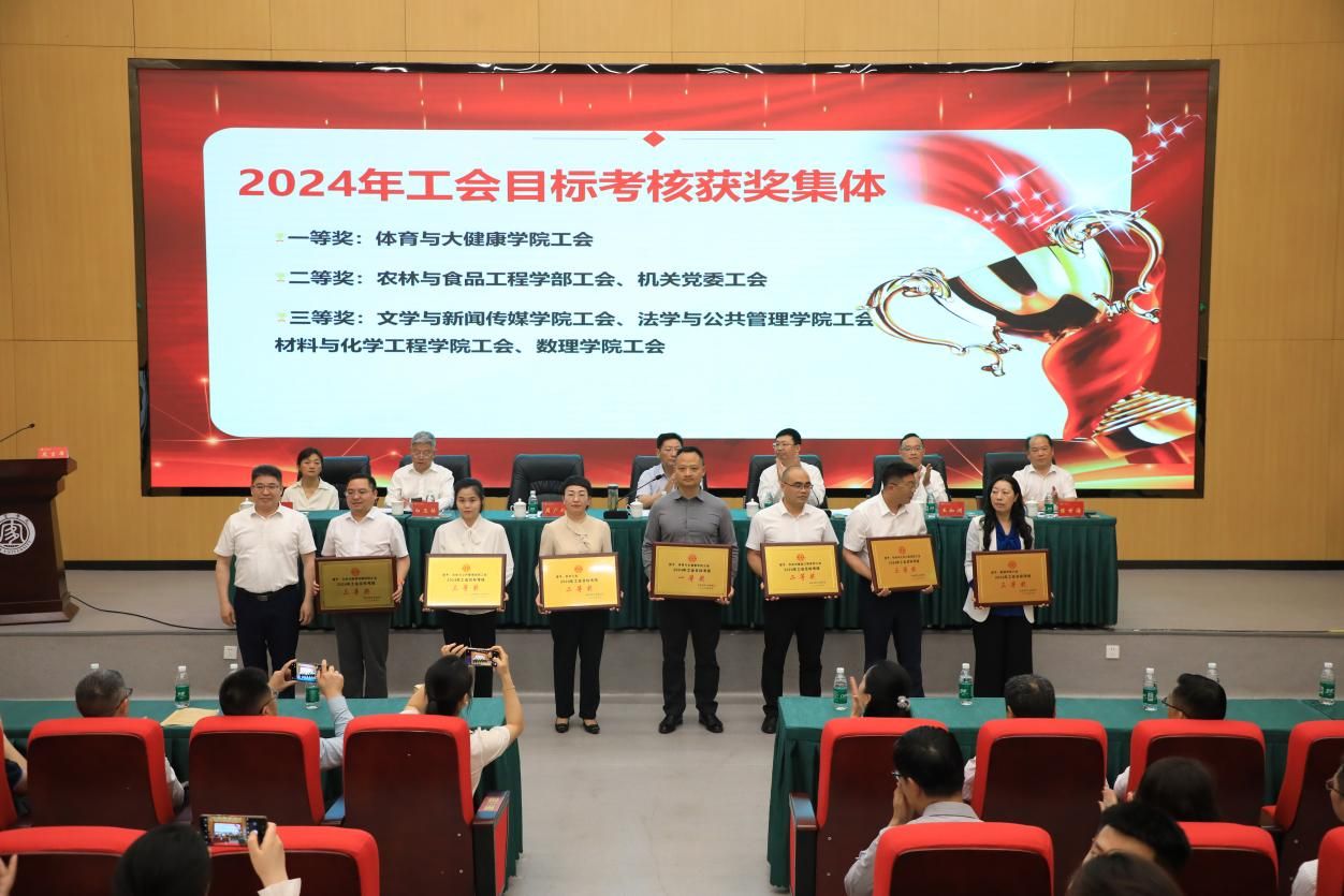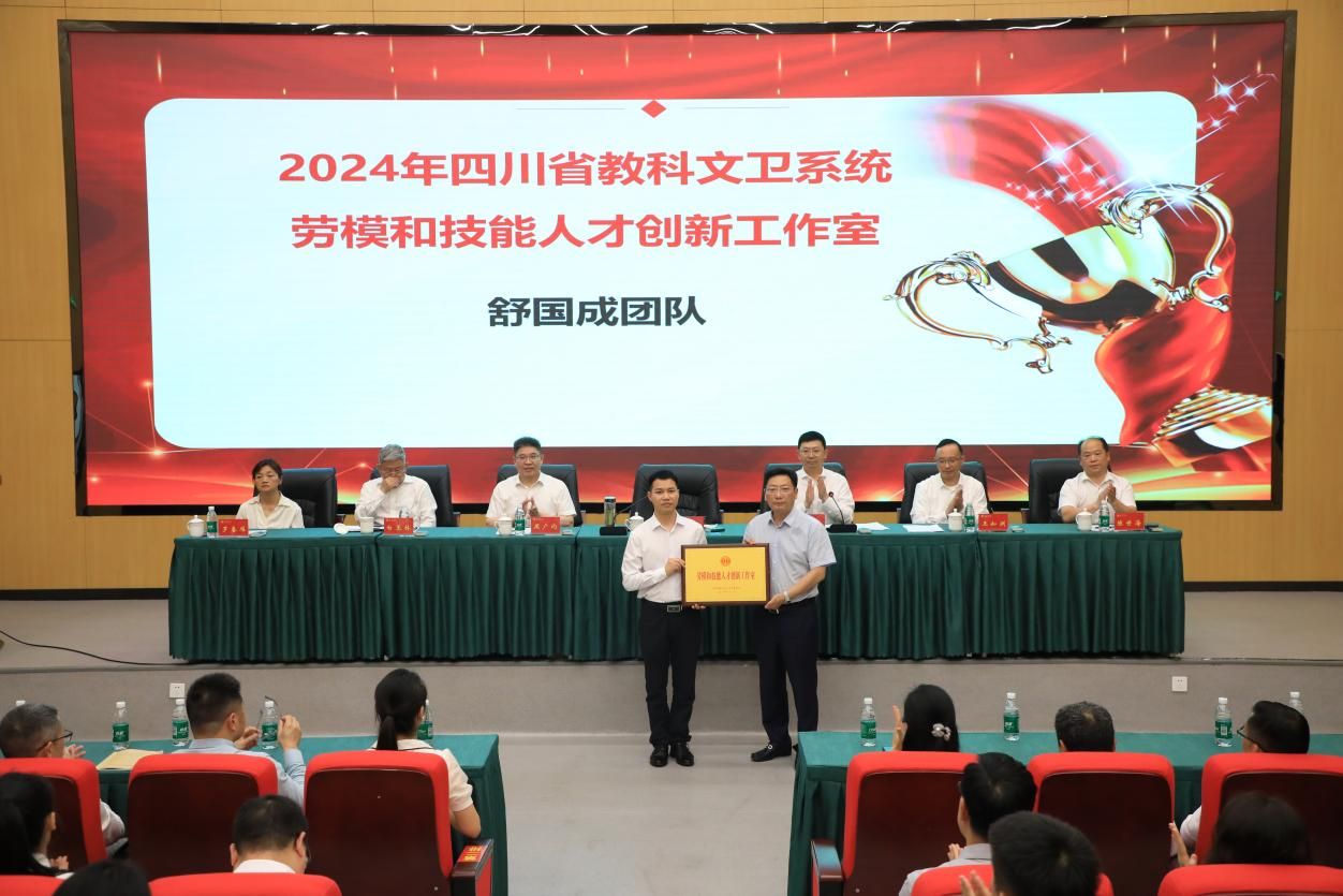 校領導、黨委常委分別為工會積極分子、優(yōu)秀工會干部、先進工作者、美好家庭、工會集體代表頒獎,并向獲得2024年四川省教科文衛(wèi)體系統(tǒng)勞模和技能人才創(chuàng)新工作室的舒國成博士團隊授牌。