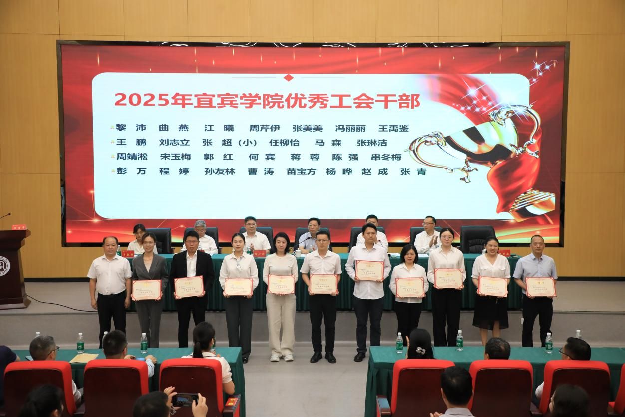 5月7日下午,宜賓學院慶祝中華全國總工會成立100周年暨?2025年勞模先進表彰會在臨港校區(qū)求實會堂召開。校領導、黨委常委出席會議。學校工會專兼職副主席、工會委員,二級工會主席,受表彰的集體和個人參會。會議由黨委副書記蔣道平主持。