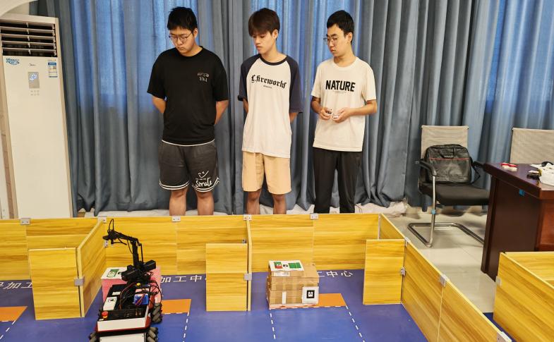 本競賽工業組共需完成2個任務:任務1機器人需要完成基于智慧倉庫場景進行開發,通過二維碼物塊模擬貨物,集成了機器人導航、二維碼識別與定位、機械臂抓取等功能。選手需要設計一個智能搬運機器人,要求機器人能夠導航到對應的加工中心,抓取指定的物料進行出庫,并且具有避障功能。任務二是任務一的基礎上要求對多種工業產品物塊的識別,結合人工智能領域中的YOLOv5目標識別算法,設計一款智能抓取搬運機器人。我校代表隊設計的機器人出色完成兩項任務成功獲得一等獎。