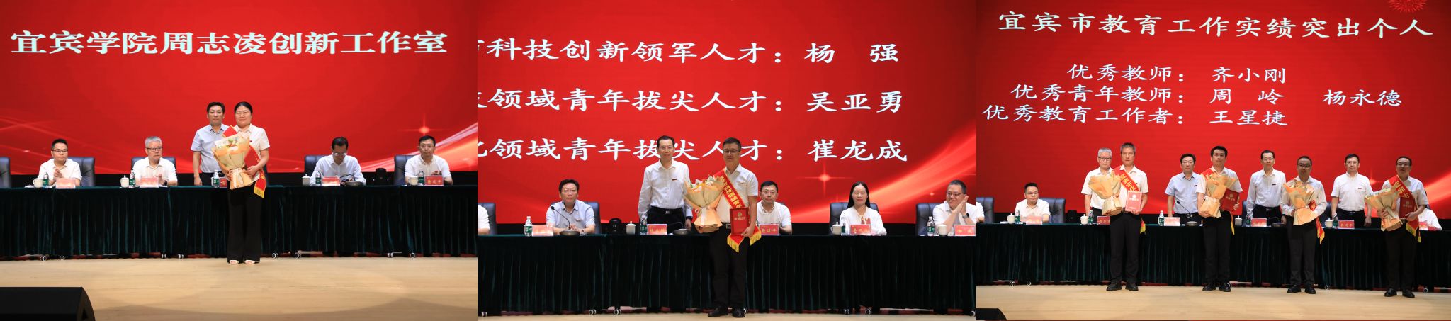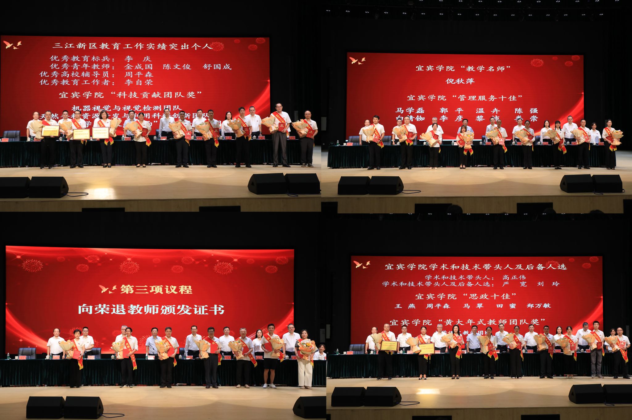 大會表彰了四川省教科文衛體系統五一巾幗創新工作室、2024年度“宜賓英才計劃”,宜賓市優秀教師、優秀青年教師、優秀教育工作者,三江新區教育標兵、三江新區優秀教師、優秀高校輔導員、優秀教育工作者,2025年宜賓學院學術和技術帶頭人及后備人選的先進個人,2025年“教學名師”“思政十佳” “管理服務十佳”“黃大年式教師團隊獎”“科技貢獻團隊獎”,以及榮退教師頒獎。