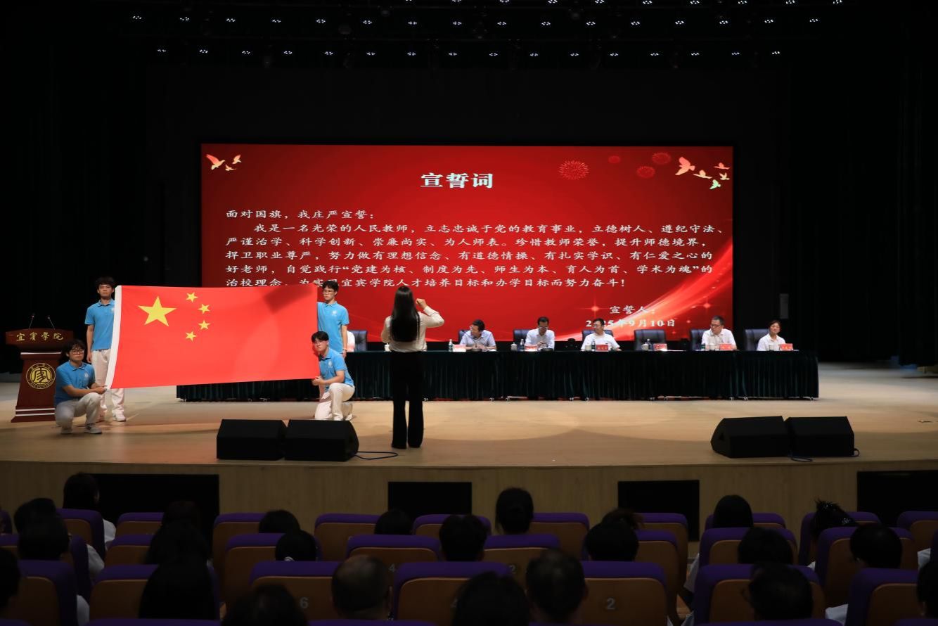 9月10日下午,宜賓學院慶祝第41個教師節暨表彰大會在開放會堂舉行。校領導、黨委常委出席會議,受表彰教師、先進集體代表、榮退教師代表、新入職教師、教師代表和學生代表,副處級及以上干部參會。