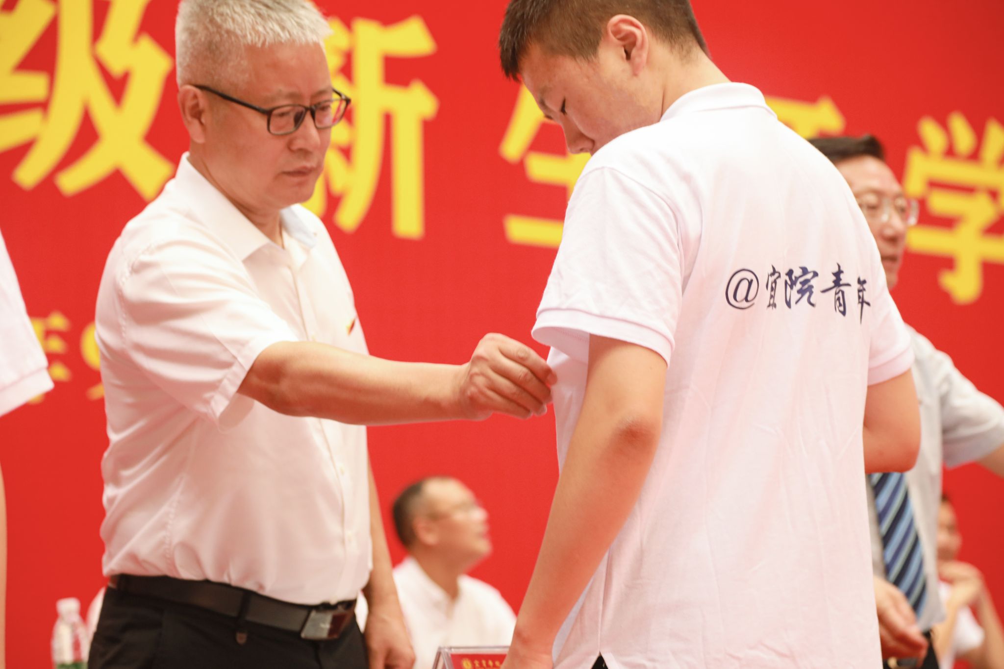 在佩戴校徽儀式中,校領導為新生代表授予校徽,全體新生鄭重地將校徽佩戴于胸前,標志著他們正式成為宜賓學院的一員。校徽不僅代表著身份,更承載著“自強不息、至善致遠”的宜賓學院精神和“求實、求是、開放、創新”的校訓品格。