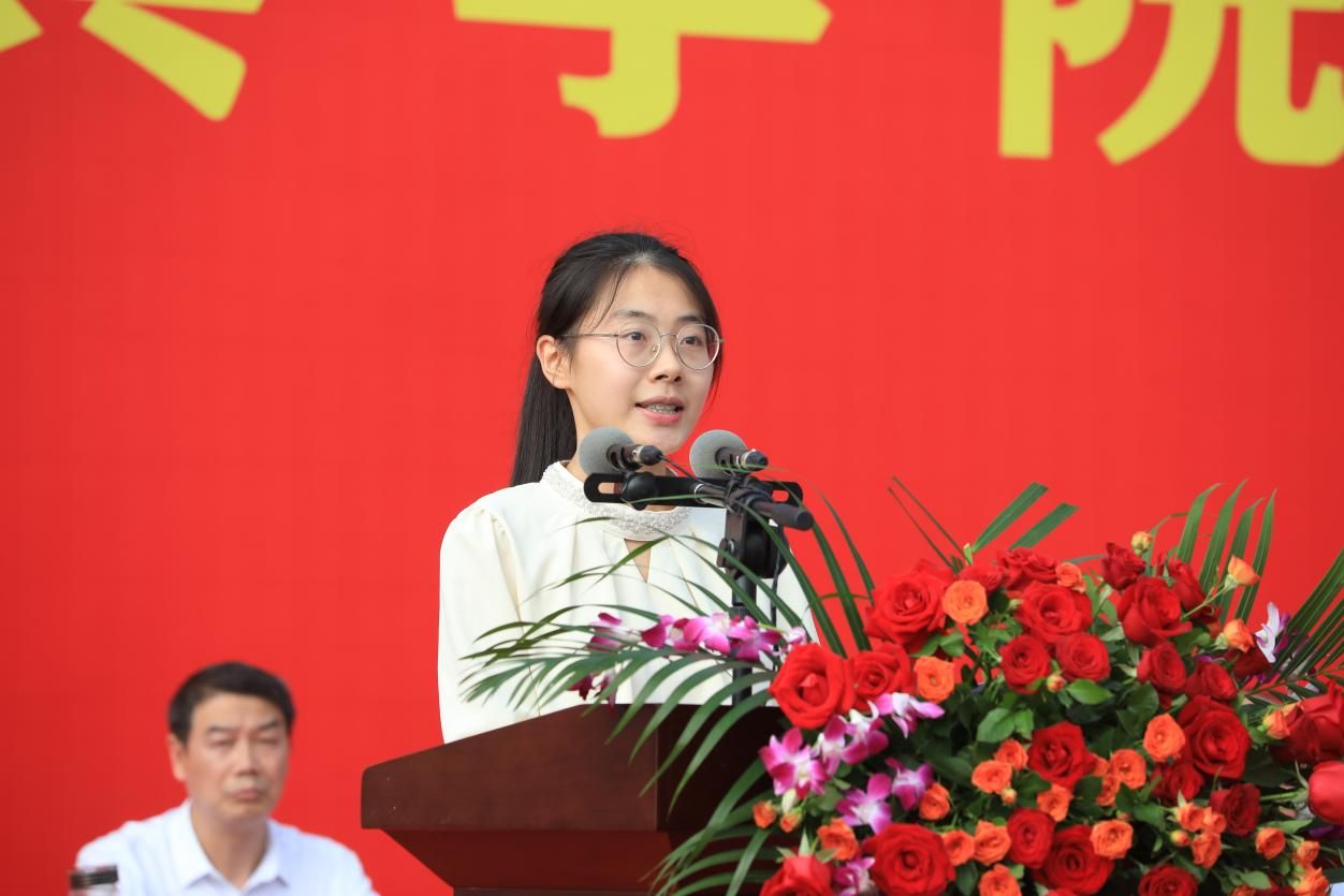 高年級學生代表2022級漢語言文學專業馬浩然、2022級計算機科學與技術專業何沁燕結合自身成長經歷,分享了對大學生活的理解與感悟。他們鼓勵學弟學妹在新的人生階段里勇敢嘗試、堅持熱愛,在奮斗中實現自我價值,在奉獻中收獲成長。