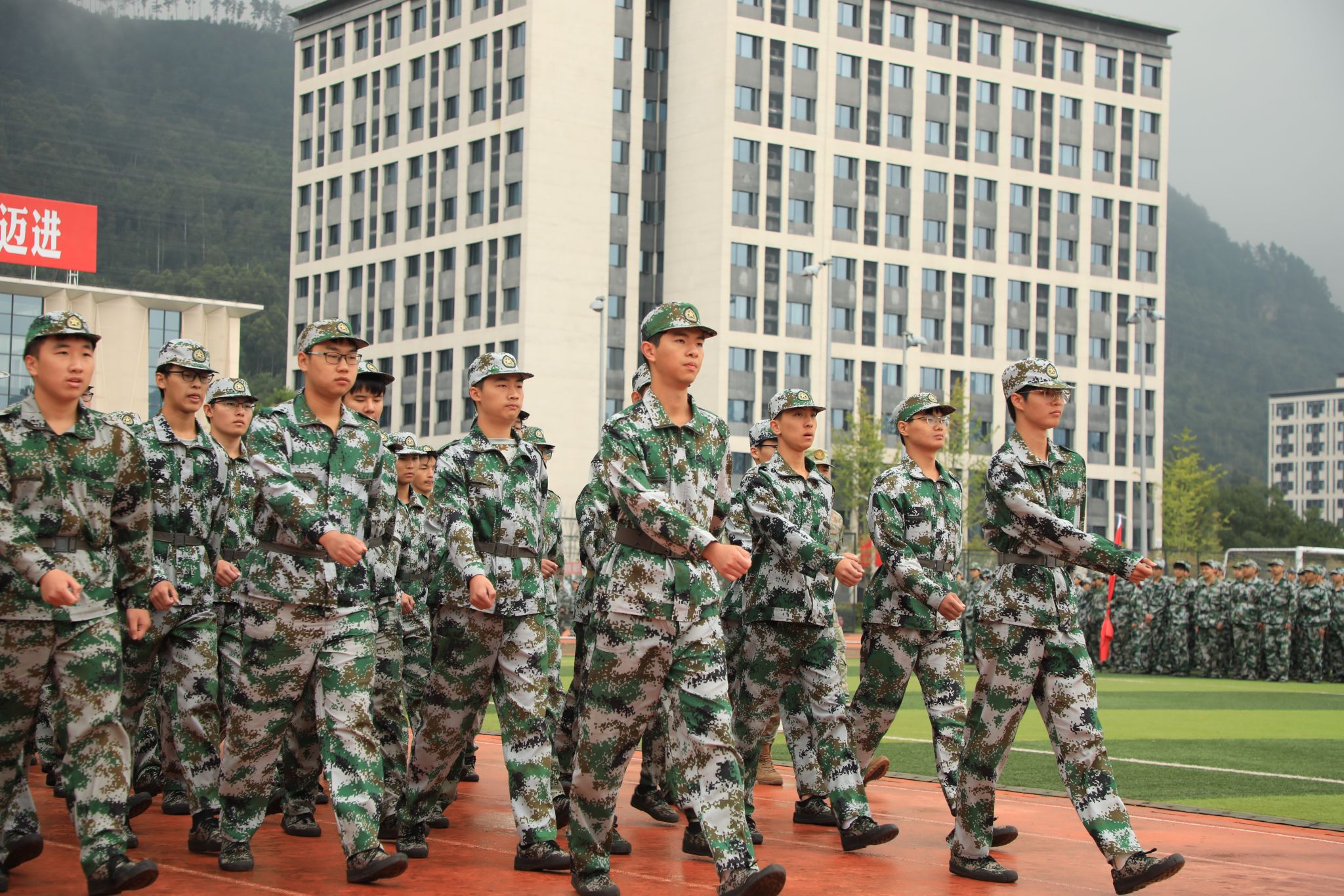 身著迷彩服的宜院學子昂首挺胸、步伐鏗鏘地步入會場,他們目光堅毅、充滿朝氣,點燃了現場氛圍。