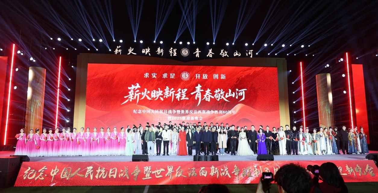 山河無(wú)恙,歲月崢嶸;薪火相傳,弦歌不輟。為深切緬懷抗戰(zhàn)先烈的豐功偉績(jī),傳承紅色基因,讓青年學(xué)子在回望歷史中堅(jiān)定理想信念、續(xù)寫時(shí)代華章,11月9日晚,“薪火映新程 青春敬山河”——宜賓學(xué)院紀(jì)念中國(guó)人民抗日戰(zhàn)爭(zhēng)暨世界反法西斯戰(zhàn)爭(zhēng)勝利80周年暨2025級(jí)迎新晚會(huì)在臨港校區(qū)足球場(chǎng)舉行。線上線下一萬(wàn)余名師生共同觀看《青春與信仰 宜賓學(xué)院弘揚(yáng)偉大抗戰(zhàn)精神藝術(shù)思政大課》,整場(chǎng)晚會(huì)通過(guò)生動(dòng)的樂(lè)、舞演繹,將紅色教育具象化為可感可觸的精神滋養(yǎng),強(qiáng)化了年輕一代對(duì)黨史與信仰力量的認(rèn)知。
