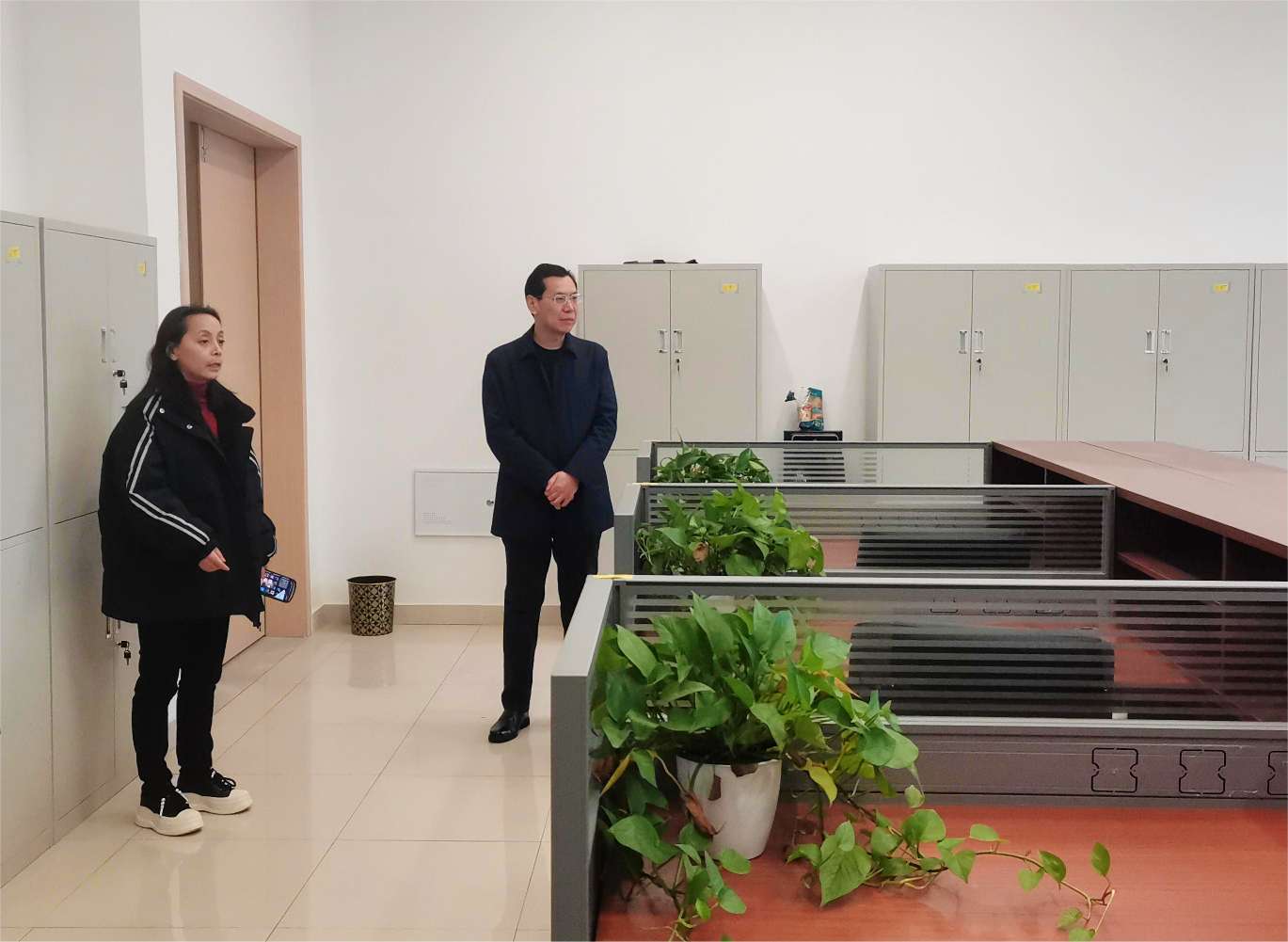 馬洪江帶領教務處、基建處等職能部門負責人到馬克思主義學院,馬克思主義學院黨總支書記葉林、副院長(負責工作)竭仁貴及其他領導干部陪同參加檢查。