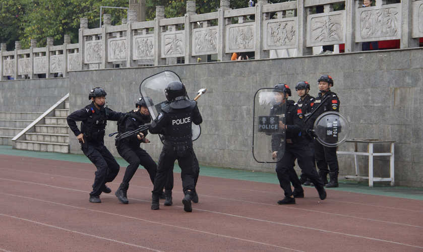 12日,宜賓學院、翠屏區公安分局和新街派出所聯合舉辦的“4.15”國家安全宣傳教育日活動正式啟動。學校100余名師生代表參與。活動現場設置有宣傳咨詢臺,民警向過往師生派發國家安全宣傳手冊并答疑解惑。隨后,學校保衛處與分局巡警大隊通力合作,在操場上舉行了一場驚心動魄的反恐防暴實操演練,增強了師生員工的反恐防暴意識,同時提高了安保人員應對校園暴力突發事件的能力。