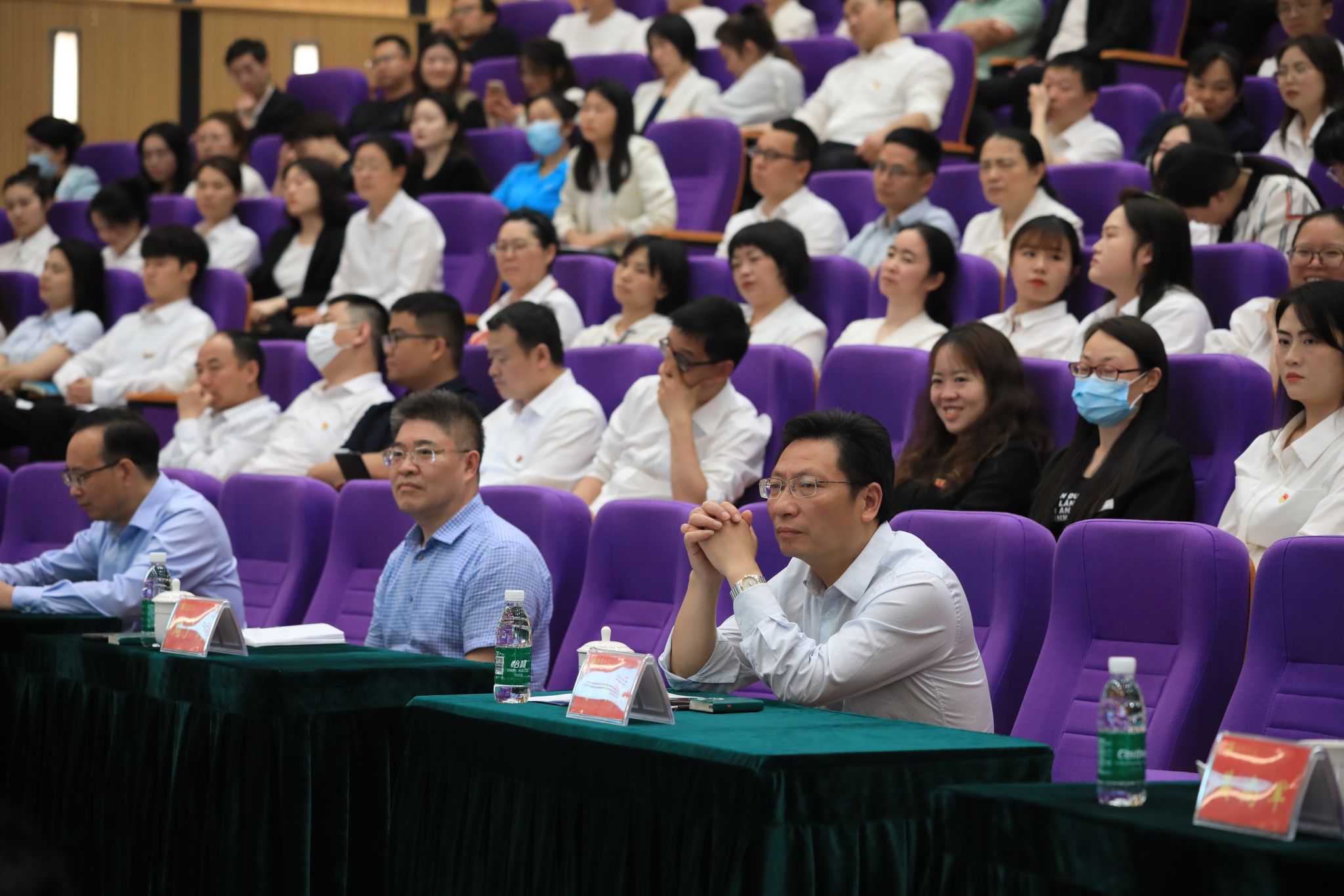 黨委常委、副院長周廣均、王如淵、白玉林出席會議。臨港校區(qū)二級學部(院)及科研平臺全體教職工、職能部門、教輔單位全體教職工參加會議。