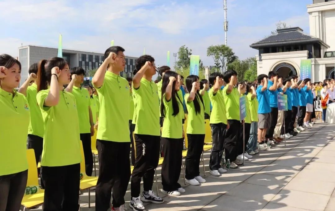 全體與會人員在高校禁毒志愿者帶領下進行了莊嚴的禁毒宣誓。在宜12所高校學生代表手持印有“青春賽道 激情奔跑”主題語和LOGO標志的四川省第七屆大學生社團禁毒文化節會旗,沿習近平總書記視察宜賓學院之路進行健身跑,牢記殷殷囑托,感恩領袖關懷,凝聚奮進力量,傳遞禁毒精神和力量。