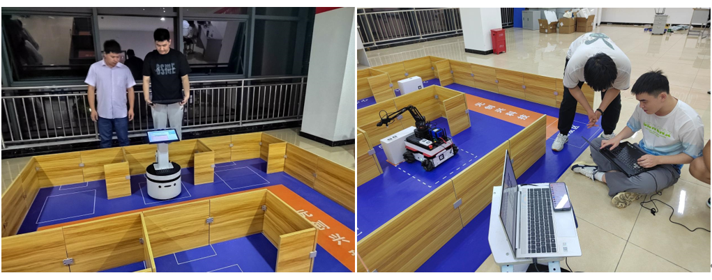 本次競賽以智能移動機器人應用為背景,綜合訓練學生人工智能以及機器人技術的開發。涵蓋智能機器人環境建模,自主定位,自主導航,視覺識別,二次定位,機器人智能語音系統開發,自然交互等智能機器人主流應用的開發。競賽分為服務機器人應用組和工業移動機器人應用組兩個組。服務機器人組具體完成一個智能迎賓引導機器人項目的開發。場景模擬了一個大型展館,展館的迎賓引導任務由機器人完成。該機器人能夠完成展館的巡游介紹,迎賓引導,語音講解,智能交互等功能。工業移動機器人組具體完成一個工業移動機器人上料和回收項目的開發。場景模擬了一個加工中心,加工中心的移動機器人負責將加工前的物料逐個放到每個加工中心,然后再逐個回收回來。