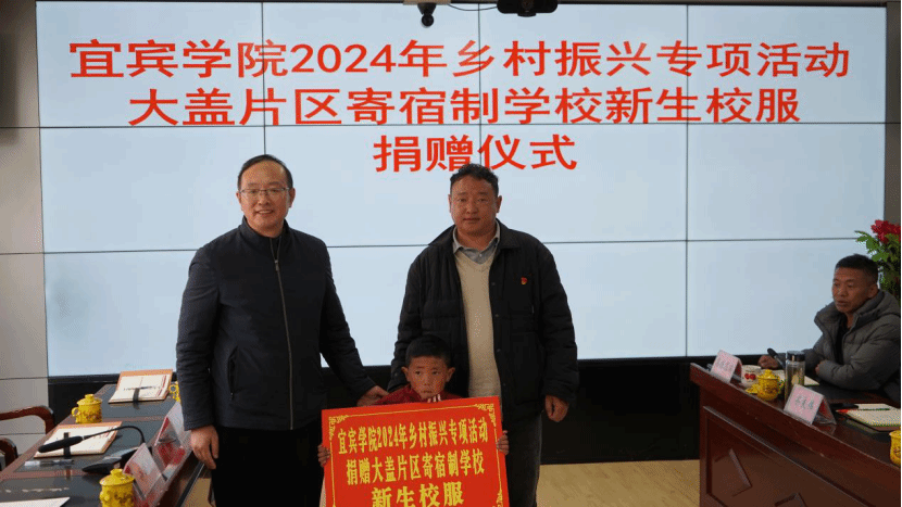 座談會上,宜賓學院向大蓋片區寄宿制學校捐贈了新生冬季校服,向大蓋鎮湯科村籍學生發放了獎、助學金,向湯科村捐贈了建設“平安鄉村”、適用于森林、草原火災的便攜式消防器材。