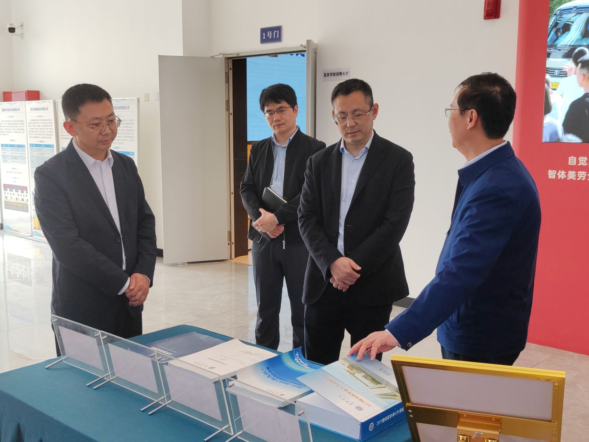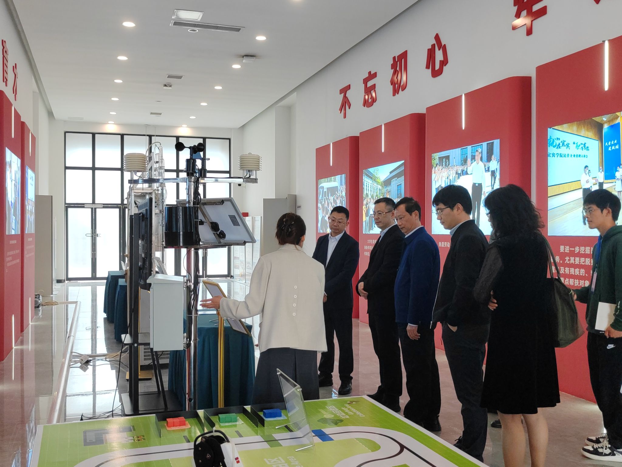 會前,在學校求實會堂,蔣道平陪同童曉暉一行參觀畢業生就業情況展臺、模擬垃圾智能分類運輸機器人展臺、智慧農業物聯網監控系統、油樟萃取精餾裝置、就業創業指導服務等展區及招聘會現場,詳細介紹了2022年6月8日習近平總書記來校視察重要指示精神以及學校貫徹落實重要指示精神的相關情況。一行人關注了解宜賓學院學生自主創新、畢業生就業、人才培養、科研競賽、產教融合等情況。