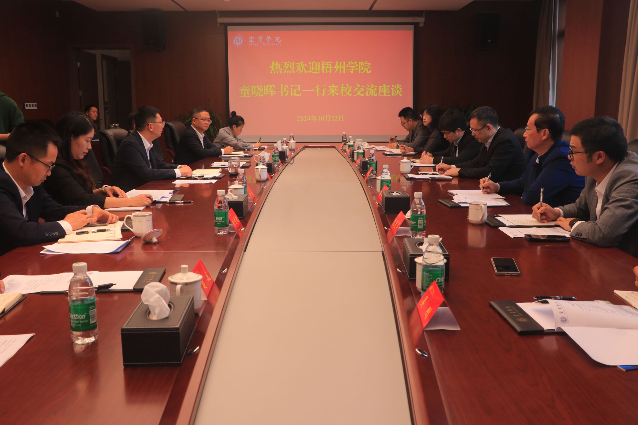 10月22日下午,梧州學院黨委書記童曉暉,黨委常委、副校長麻新純,黨委常委、宣傳部長鄧小林一行人來校調研交流。宜賓學院黨委副書記蔣道平,黨委常委、副院長王如淵,宜賓市委人才大學城局副局長廖益均陪同。交流座談會在學校臨港校區行政樓918會議室召開。