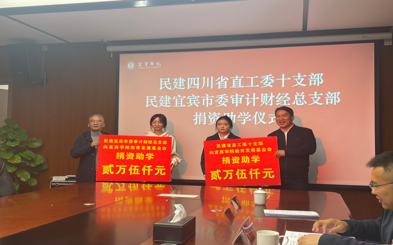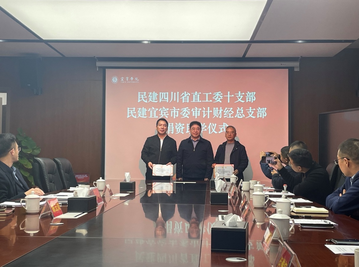 11 月 11 日,民建四川省直工委十支部、民建宜賓市委審計財經總支部在宜賓學院臨港校區舉行捐資助學儀式。民建四川省委省直屬工作委員會十支部主委陳武、宜賓民建市委會專職副主委劉世明等一行,宜賓學院黨委常委、副院長周廣均出席儀式,民建宜賓學院支部主委陳云崗、宜賓學院教育發展基金會老師及受資助學生參加儀式。