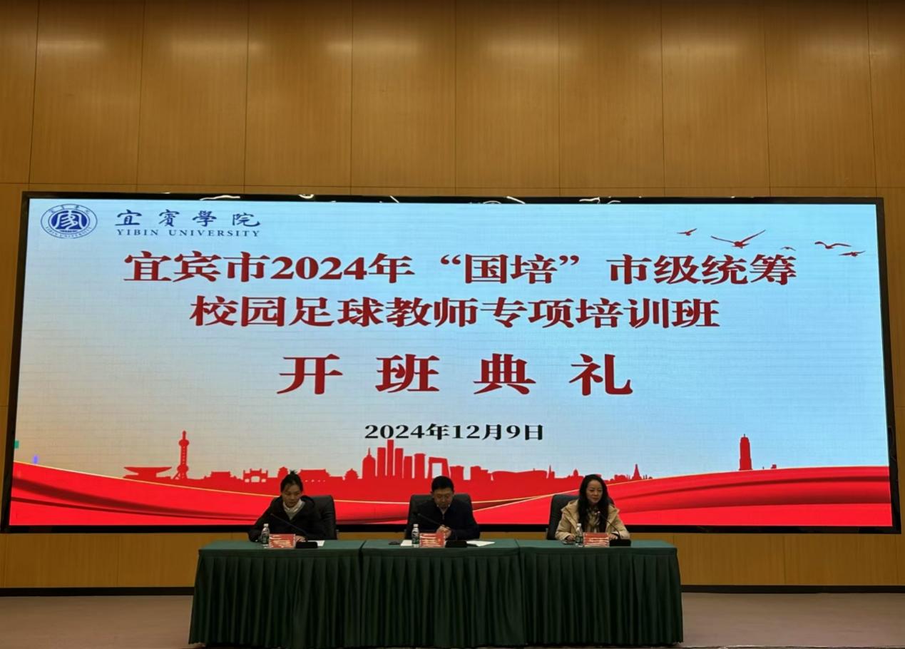12月9日上午,宜賓市2024年“國培”市級統籌校園足球教師專項培訓開班典禮在宜賓學院臨港校區求實會堂舉行。宜賓學院黨委副書記蔣道平,教師教育學院黨委書記劉薪,體育與大健康學院副院長楊曄,培訓班班主任及全體參訓學員參加開班典禮。