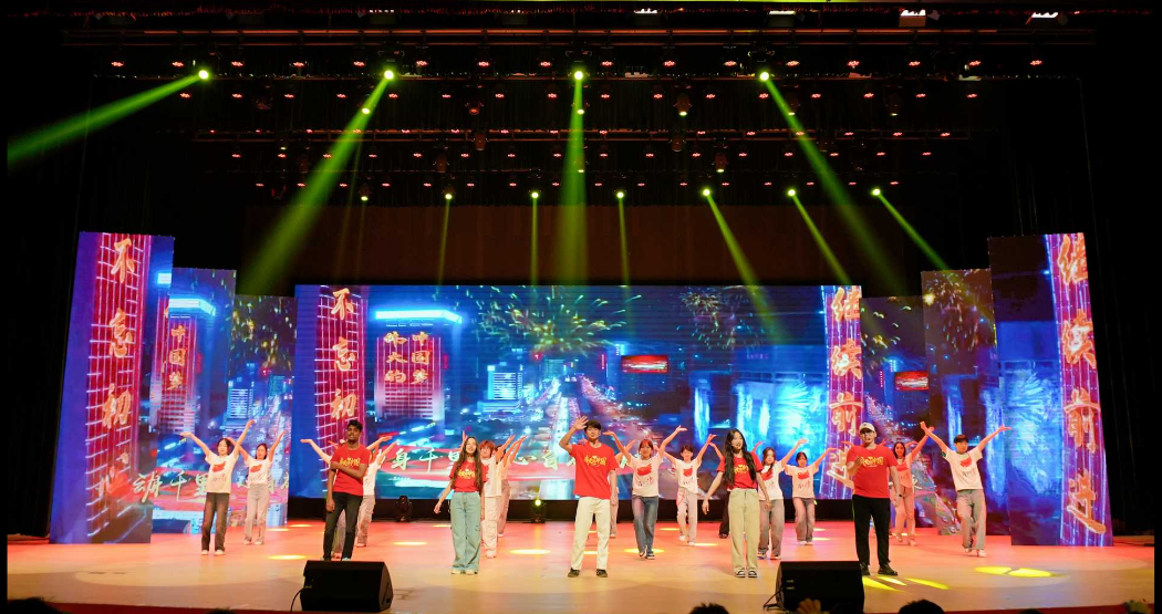 本次晚會分為“華章初綻·繪藍圖”“繁星聚耀·映征途”“盛世歡歌·頌新篇”三個篇章。隨著動感的開場音樂響起,舞臺瞬間被點亮,充滿青春活力的開場舞——《等你的回答》將現場氣氛點燃。