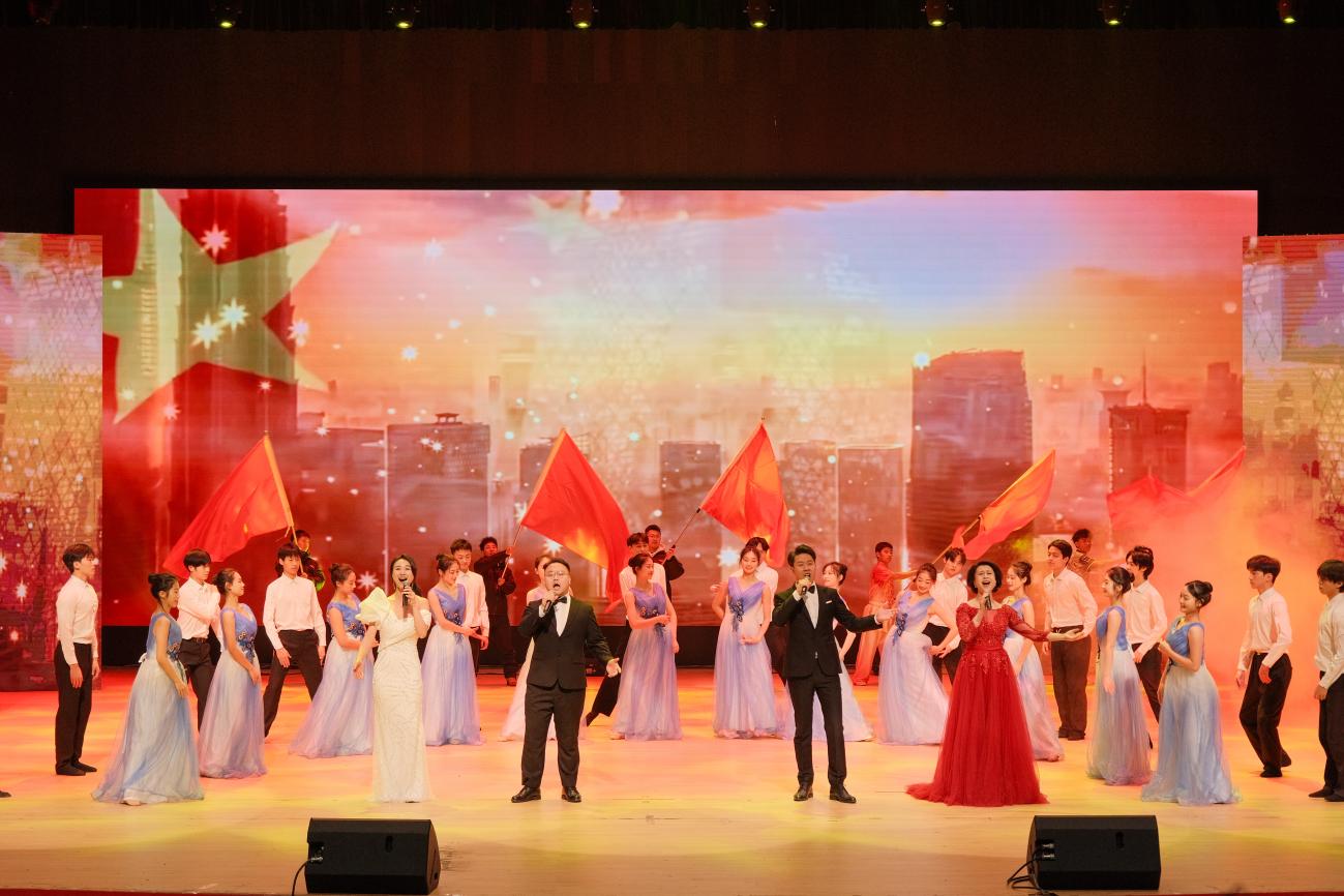 第三篇章的茶藝表演《川流不息,茶香永續》向觀眾展現了源遠流長、魅力無限的茶文化;舞蹈《詩酒年華》、歌曲《母親是中華》扣人心弦,展現溫暖而堅韌的力量;歌舞《我們的新時代》激情昂揚、充滿希望,現場齊聲高唱、旗幟揮揚,為整場晚會畫上圓滿句號。