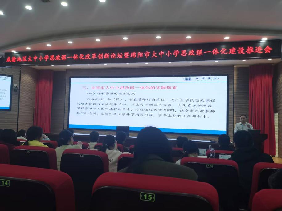 4月26日,成渝地區大中小學思政課一體化改革創新論壇暨綿陽市大中小學思政課一體化建設推進會在綿陽師范學院舉辦。本次會議由四川省教育廳指導,綿陽市委宣傳部、綿陽市教體局和綿陽師范學院聯合主辦。宜賓學院馬克思主義學院作為協辦單位,由宜賓市大中小學思政課一體化建設專家組副組長何會寧教授,馬克思主義學院副書記、副院長夏高發帶隊,馬院部分教師代表參會。