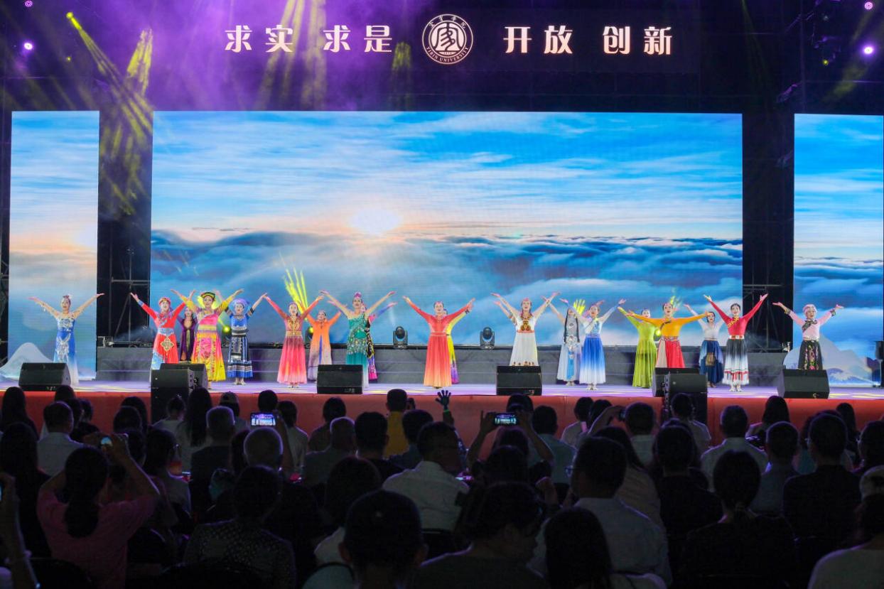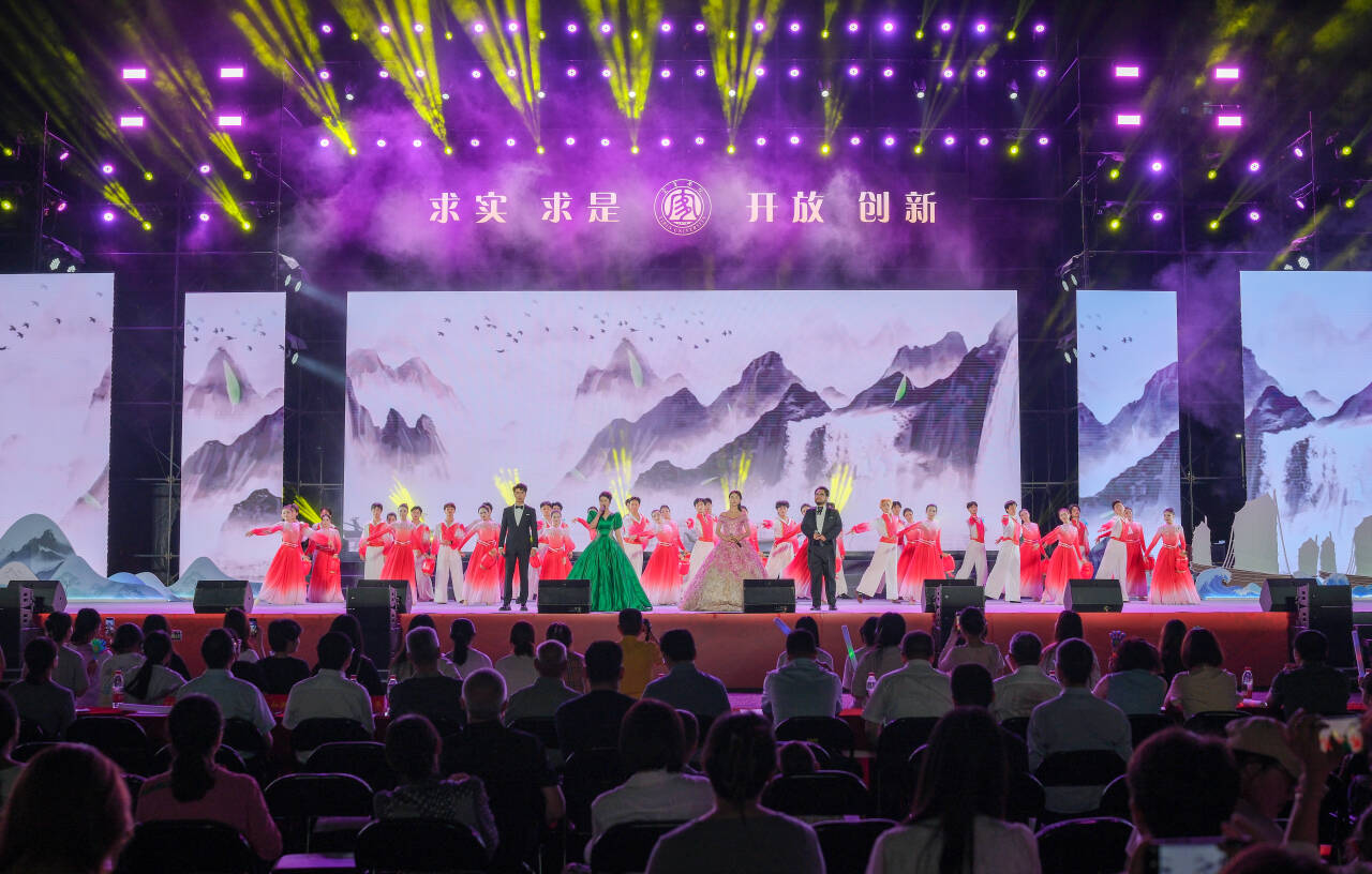 晚會以“初心不渝 薪火永續(xù)”為主題,由“韶華筑夢?初心如磐”“歲月流金?情誼未央”“星河啟航?薪火長明”三個篇章組成,其間穿插了教師代表和學(xué)生代表分享環(huán)節(jié)。