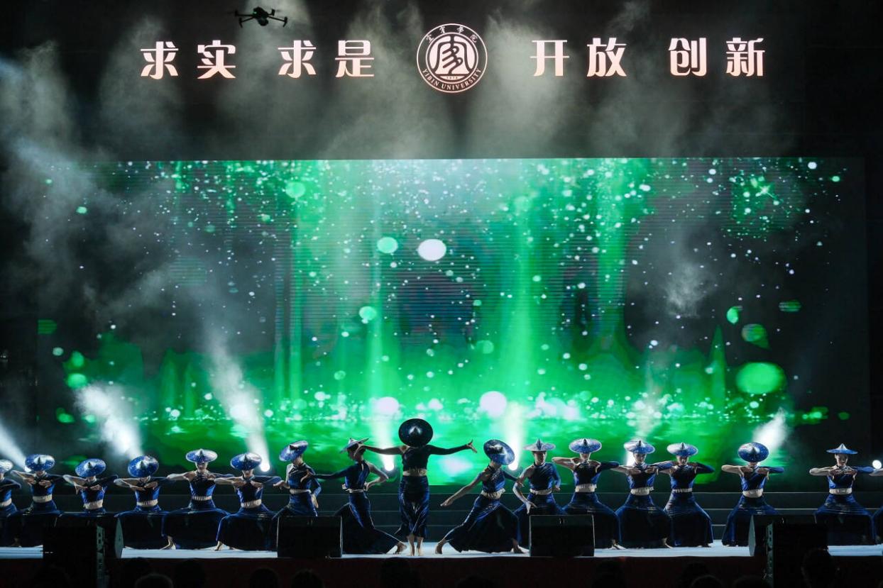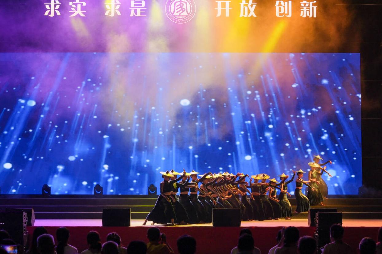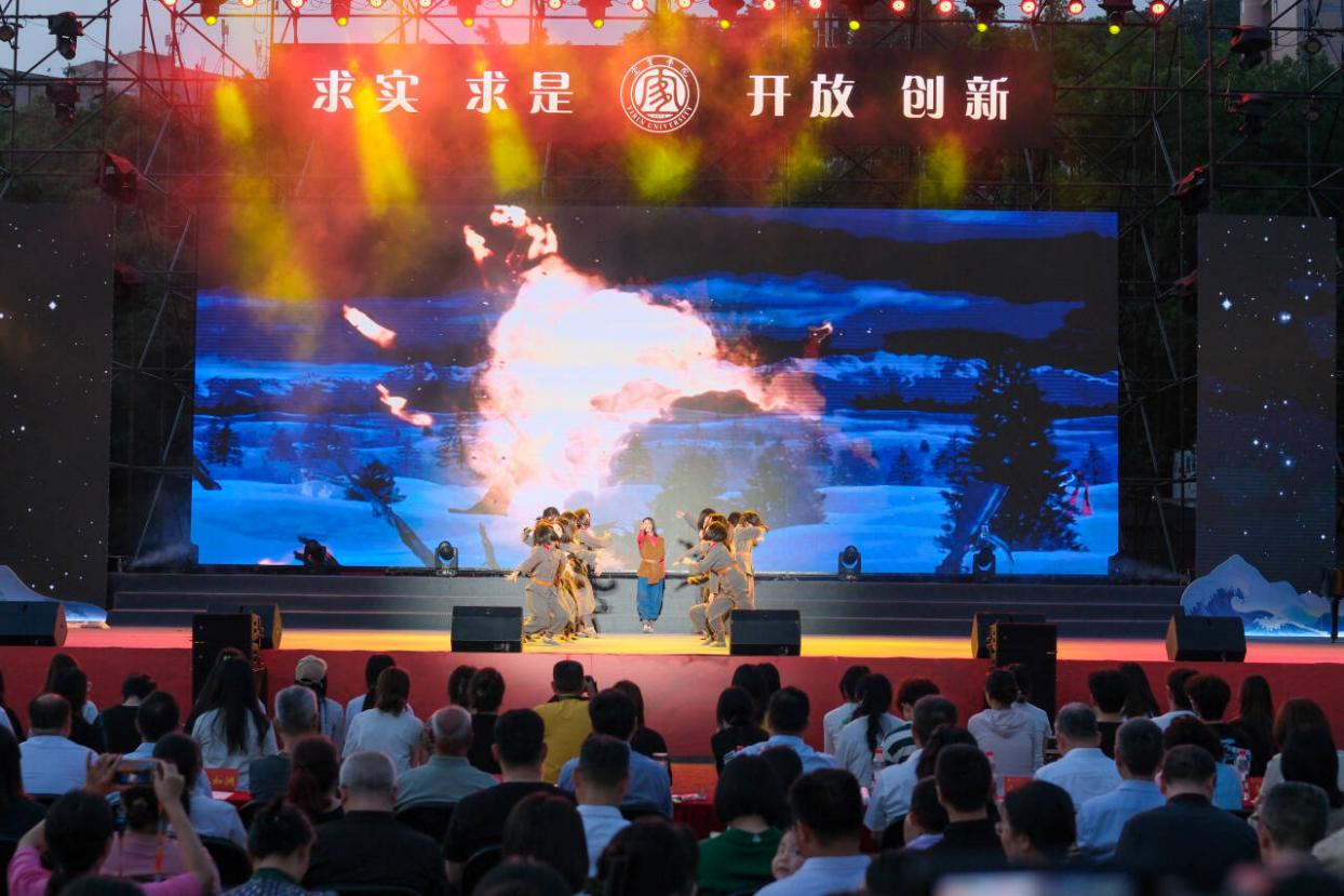 舞獅舞龍《龍獅騰躍振新程》拉開了第三篇章的序幕,傳遞吉祥與祝福;歌曲串燒《那些年的歌?致我們的滾燙青春》喚起青春回憶;傣族舞《陶醉了》帶來濃郁民族風(fēng)情;歌舞表演唱《盛世歡歌》將氣氛推向高潮。晚會在全場師生齊唱校歌《鑄就輝煌》中落下帷幕。