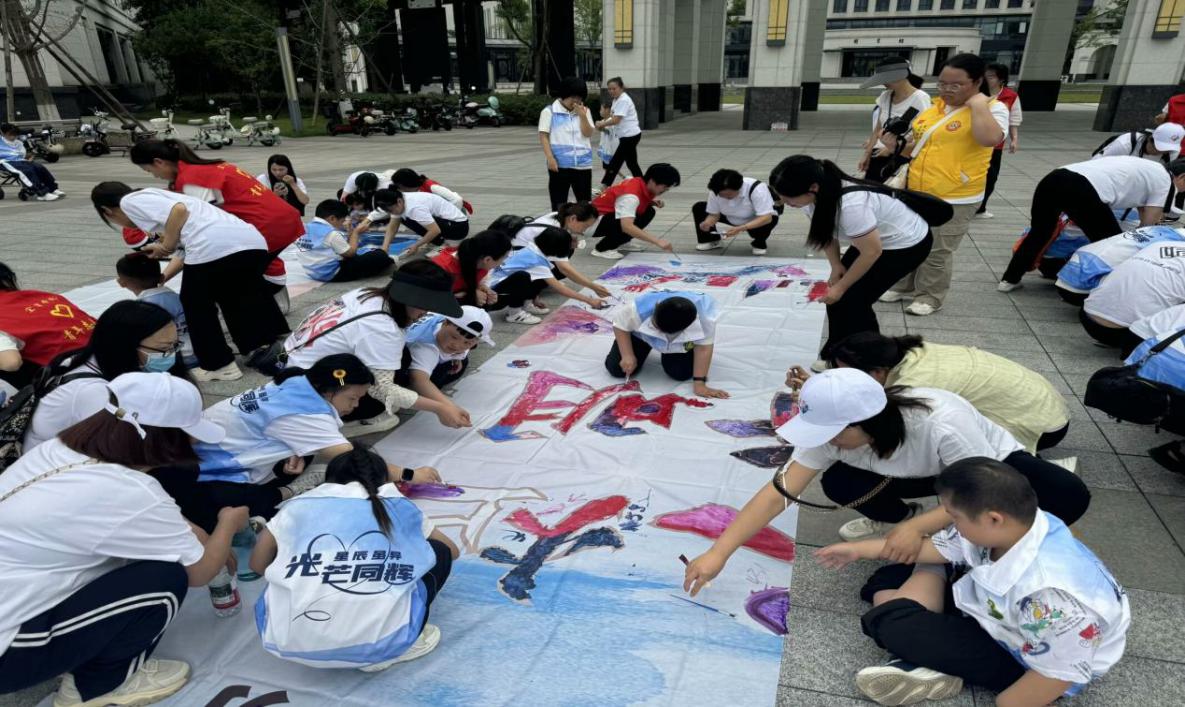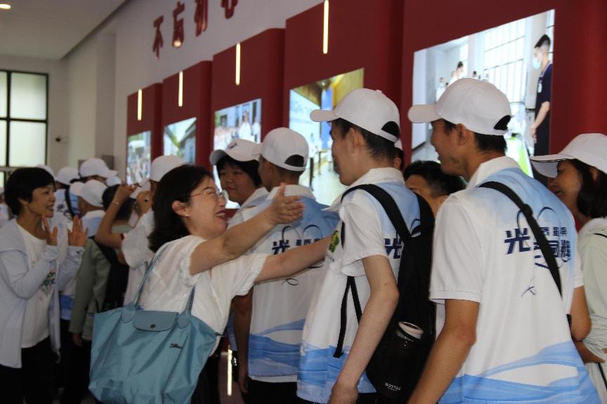 啟動儀式后,全體人員在學校志愿者的陪同下參觀求實會堂等場所,感受濃厚大學文化氛圍。在“舞動奇跡”的手語舞表演環(huán)節(jié),心智障礙青少年、家長與大學生志愿者攜手演繹《不要慌,太陽下山有月光》,以無聲的韻律傳遞勇氣與希望。隨后,全體參與者共同繪制以“全國助殘日”為主題的20米愛心畫布,斑斕色彩中凝聚著對包容社會的期許。心智障礙青少年還在我校志愿者的陪伴下體驗高校食堂就餐,感受校園生活的日常點滴。