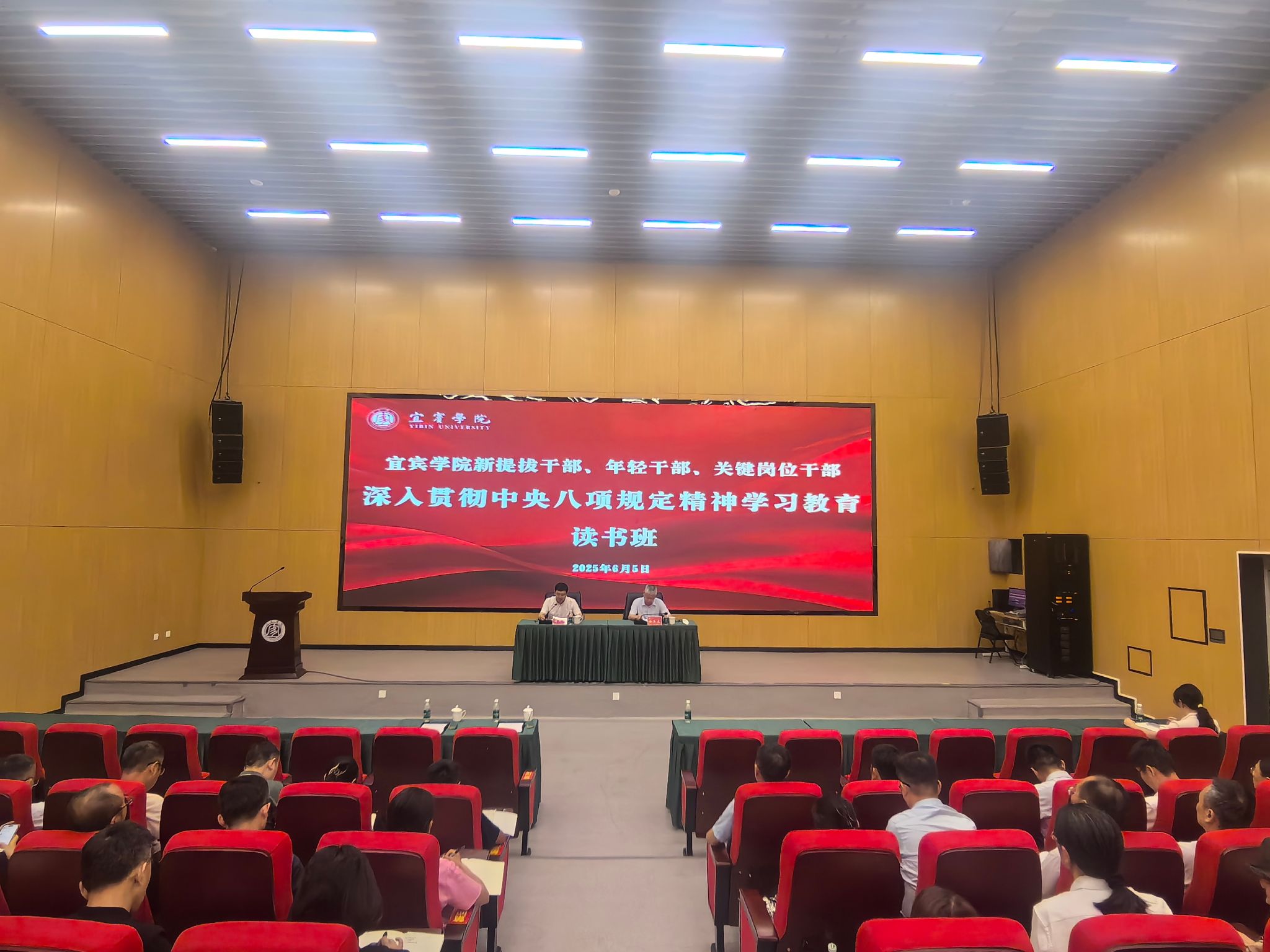 為深入貫徹中央八項規定精神學習教育和高校領域突出問題系統整治工作有關要求,6月5日15:00,宜賓學院深入貫徹中央八項規定精神學習教育讀書班在臨港校區求實會堂階梯報告廳舉行。近半年新任處科級干部、40歲以下年輕處級干部、重點領域和關鍵崗位處科級干部參加了此次學習。會議由學校黨委副書記蔣道平主持。