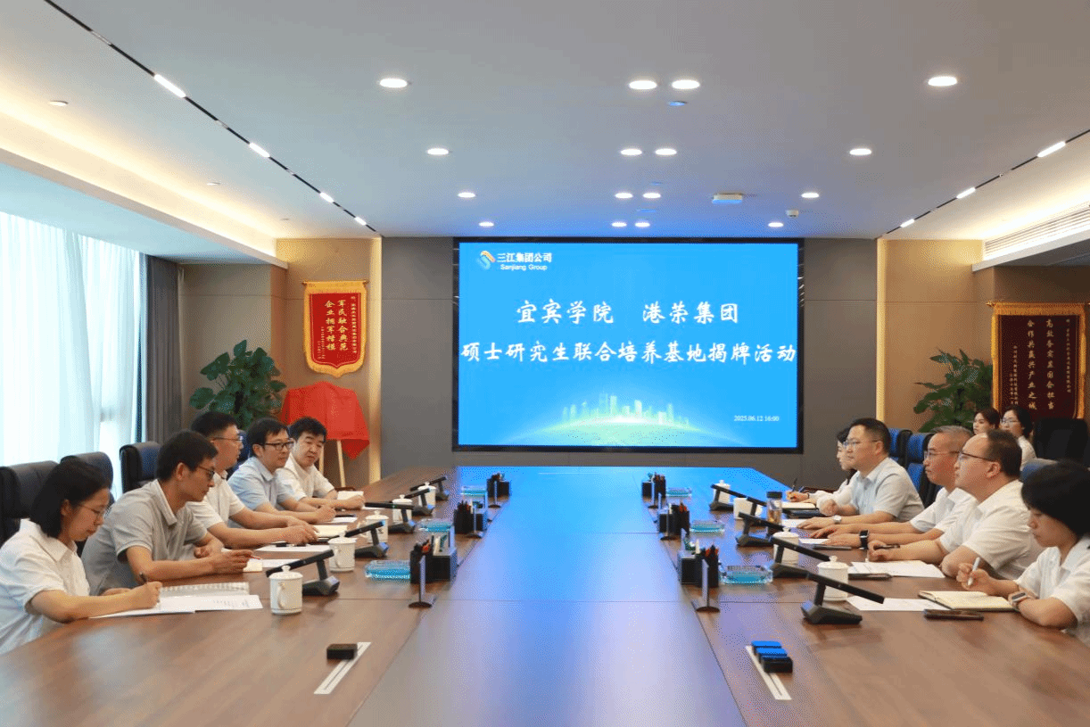 近日,一場聚焦產教融合、共育人才的盛會在未來三江大廈25樓一號會議室舉行,宜賓學院與港榮集團共建碩士研究生聯合培養基地揭牌儀式在此啟幕。宜賓學院黨委副書記蔣道平,藝術設計學院院長劉煒、副院長王海明,三江集團黨委書記、董事長羅慶,港榮集團黨委書記、董事長孫懷科等領導及相關工作人員齊聚一堂,共同見證這一重要時刻。