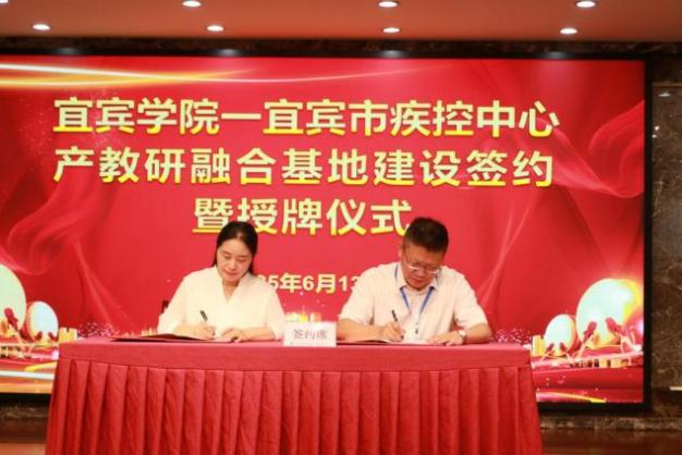 近日,宜賓學院與宜賓市疾控中心產教研融合基地建設簽約暨授牌儀式在宜賓市疾控中心舉行。作為我校深化產教融合、服務地方發展的重要舉措,此次合作將為宜賓學院學子搭建更優質的實踐平臺,為區域公共衛生事業發展注入新活力。宜賓學院副院長覃鳳清,宜賓市衛健委黨組書記、主任何江,市疾控局局長、市衛健委副主任胡雪梅,市疾控中心黨委書記黃雁林、市疾控中心主任李昭輝等領導出席儀式。