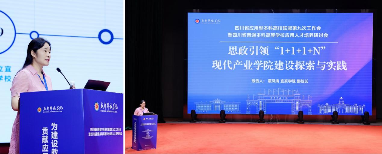 為深化應(yīng)用型高等教育的理念與實(shí)踐研究,7月3-5日,四川省應(yīng)用型本科高校聯(lián)盟第九次工作會(huì)暨四川省普通本科高等學(xué)校應(yīng)用人才培養(yǎng)研討會(huì)在成都錦城學(xué)院召開。宜賓學(xué)院副院長(zhǎng)覃鳳清率隊(duì)參會(huì),并受邀作《思政引領(lǐng)“1+1+1+N”現(xiàn)代產(chǎn)業(yè)學(xué)院建設(shè)探索與實(shí)踐》的主題報(bào)告。