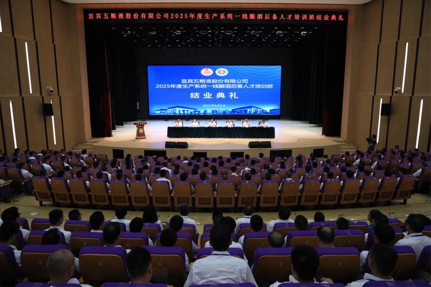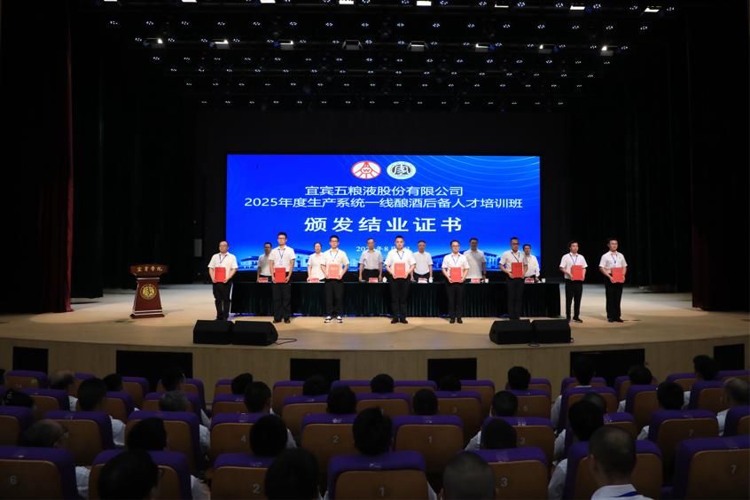 8 月 6 日下午,宜賓五糧液股份有限公司與宜賓學(xué)院聯(lián)合舉辦的2025年度生產(chǎn)系統(tǒng)一線釀酒后備人才培訓(xùn)班結(jié)業(yè)典禮在宜賓學(xué)院臨港校區(qū)二期開放會(huì)堂舉行。宜賓學(xué)院黨委常委、副院長王如淵,宜賓五糧液股份有限公司副總經(jīng)理岳松出席并發(fā)表講話。校企領(lǐng)導(dǎo)為參訓(xùn)學(xué)員代表頒發(fā)結(jié)業(yè)證書,標(biāo)志著為期5天的沉浸式培訓(xùn)畫上圓滿句號。