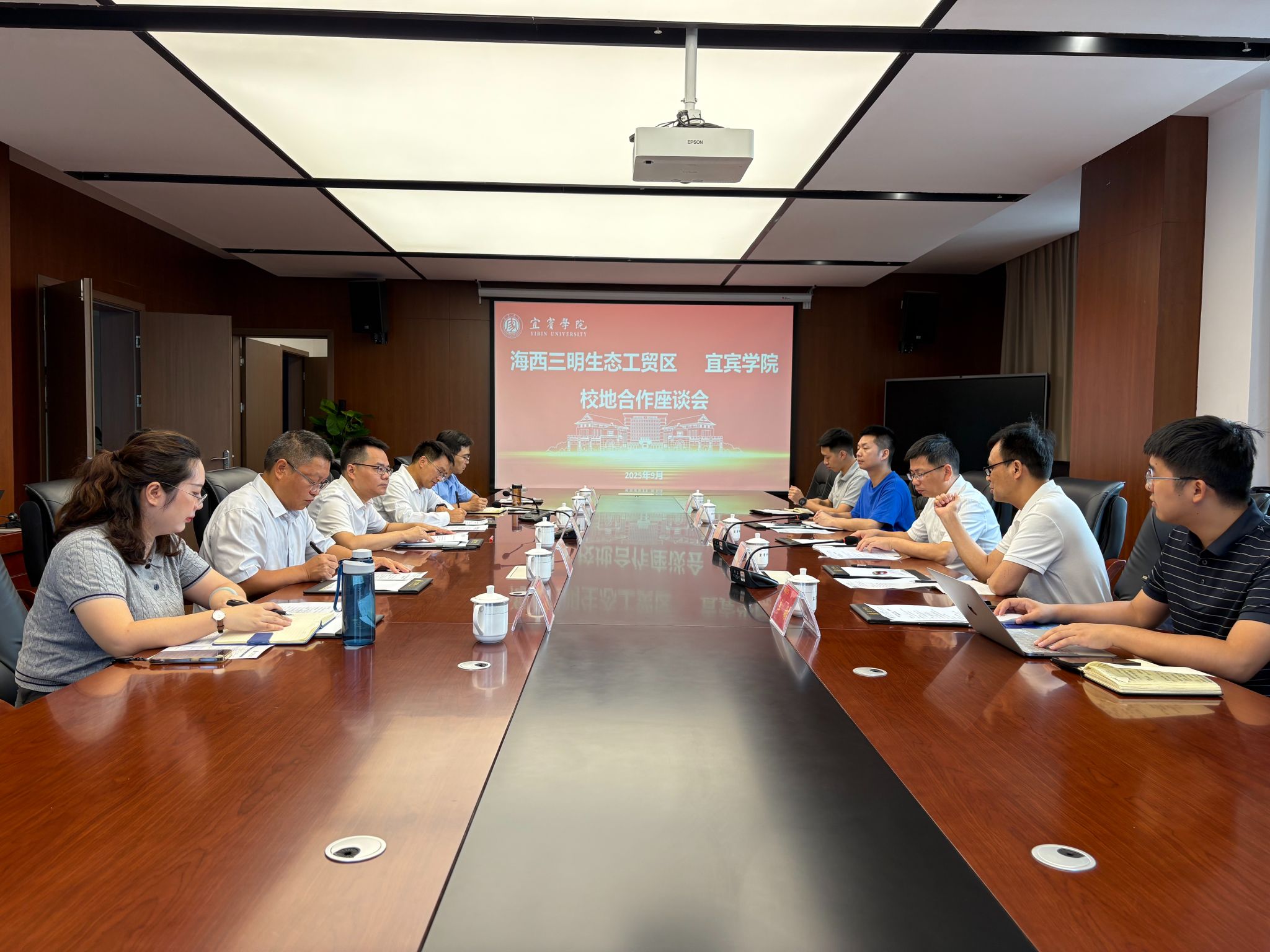 為深化校地合作,推動科技創新、協同育人、共建共享發展,9月9日上午,海西三明生態工貿區黨工委委員、管委會副主任黃騰展,投資促進局局長朱道和、中關村信息谷宜賓公司負責人李楠,中關村信息谷三明公司川渝片區招商經理鄧林杰一行到校開展校地合作座談會,宜賓學院黨委常委、副院長楊強出席會議。