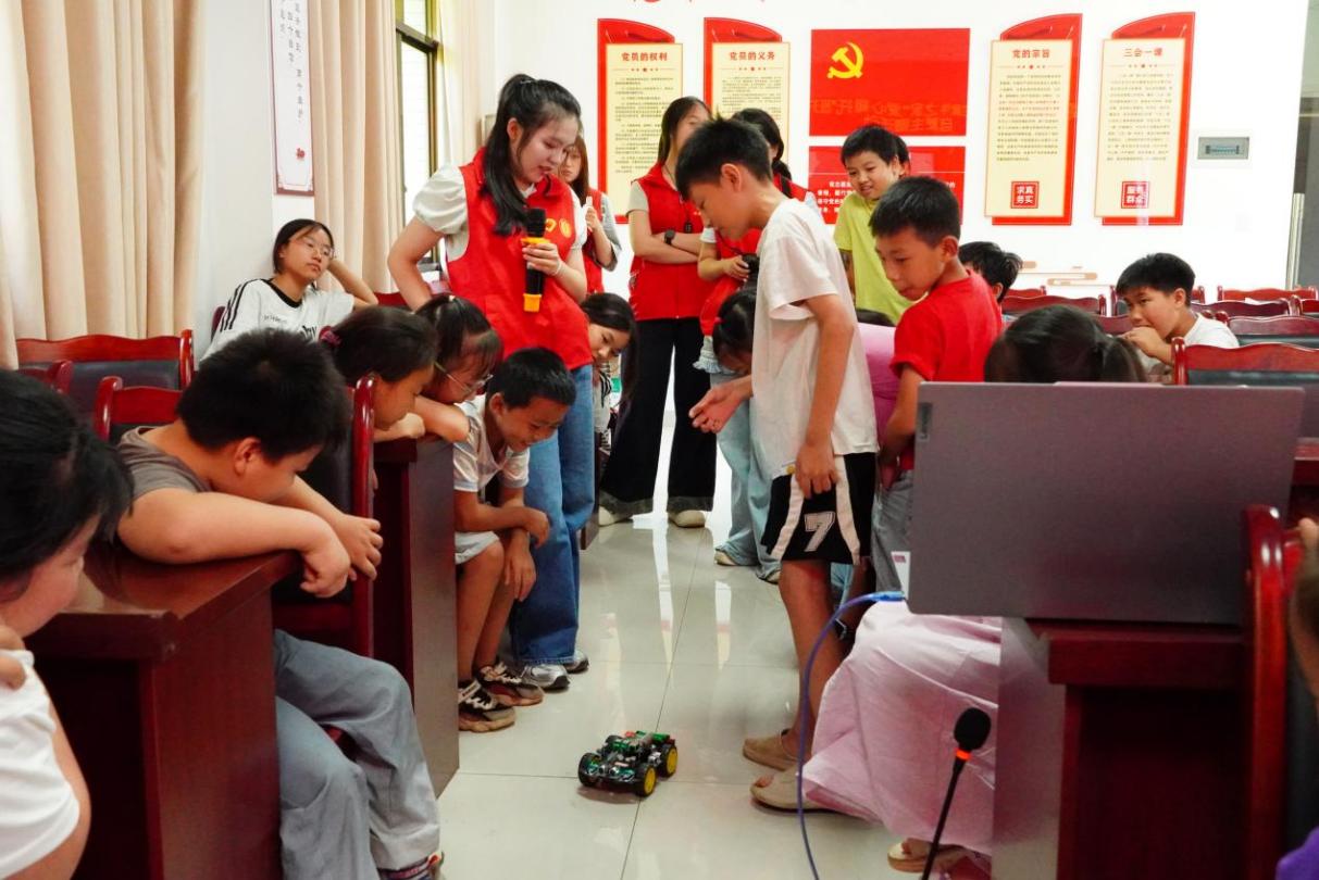 聚焦科技賦能,培育創(chuàng)新思維。團(tuán)隊(duì)開(kāi)展“科技創(chuàng)新”實(shí)踐活動(dòng),圍繞人工智能、編程、趣味科創(chuàng)實(shí)驗(yàn)等方向,通過(guò)AI大模型互動(dòng)體驗(yàn)、智能小車編程教學(xué)等豐富形式,為基層科技創(chuàng)新發(fā)展貢獻(xiàn)力量,將前沿科技知識(shí)巧妙融入趣味教學(xué),開(kāi)展科學(xué)實(shí)驗(yàn)課程,助力提升學(xué)生的科學(xué)素養(yǎng)。