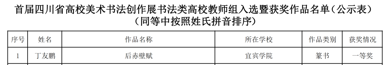近日,由四川省教育廳、四川省文學藝術(shù)界聯(lián)合會聯(lián)合主辦的首屆四川省高校美術(shù)書法創(chuàng)作展獲獎名單揭曉。經(jīng)多輪評審,我院師生共獲獎3項,其中一等獎1項、二等獎2項,展現(xiàn)了我校在美術(shù)書法領(lǐng)域的深厚積淀與教學成果。
